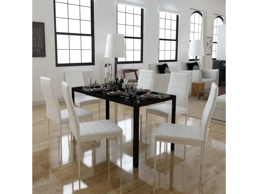 Táto jedálenská súprava pozostávajúca zo 7 kusov má hladký a moderný dizajn a je ideálna pre tých, ktorí chcú svojmu interiéru dodať štýl.
