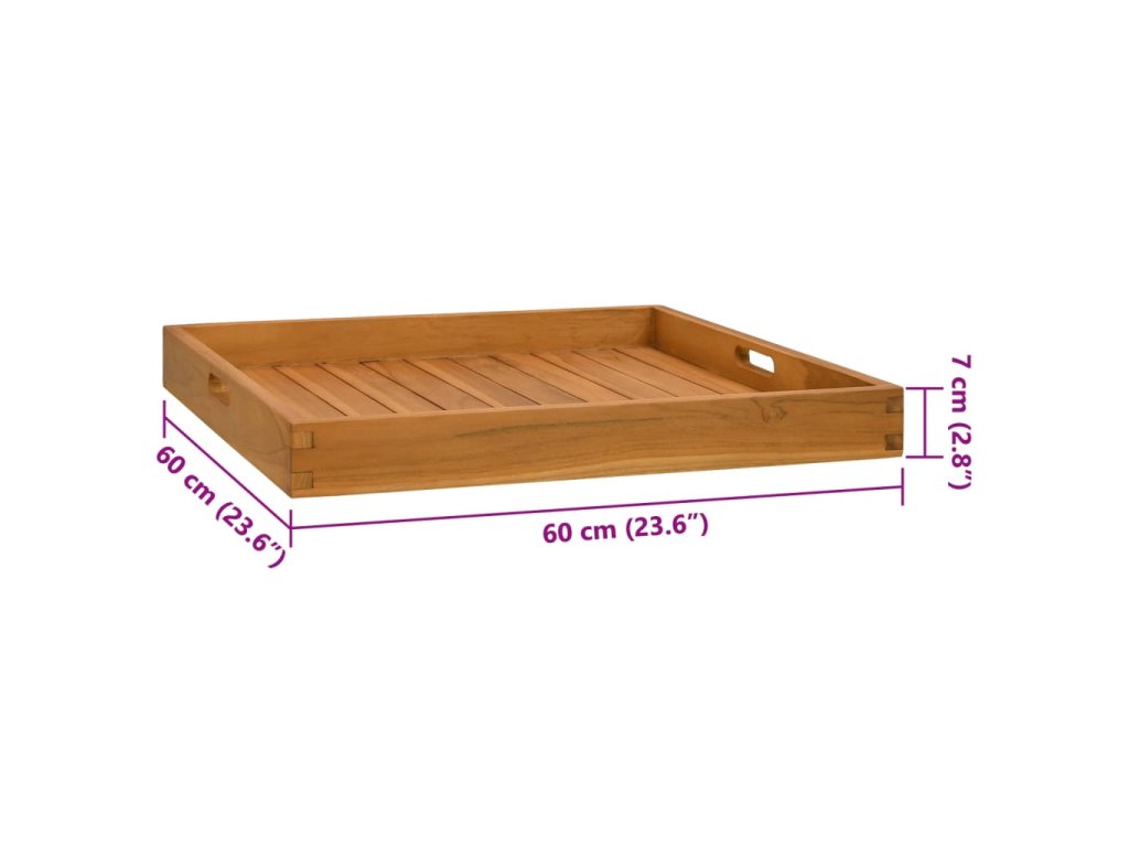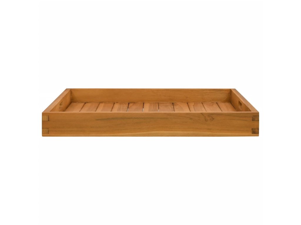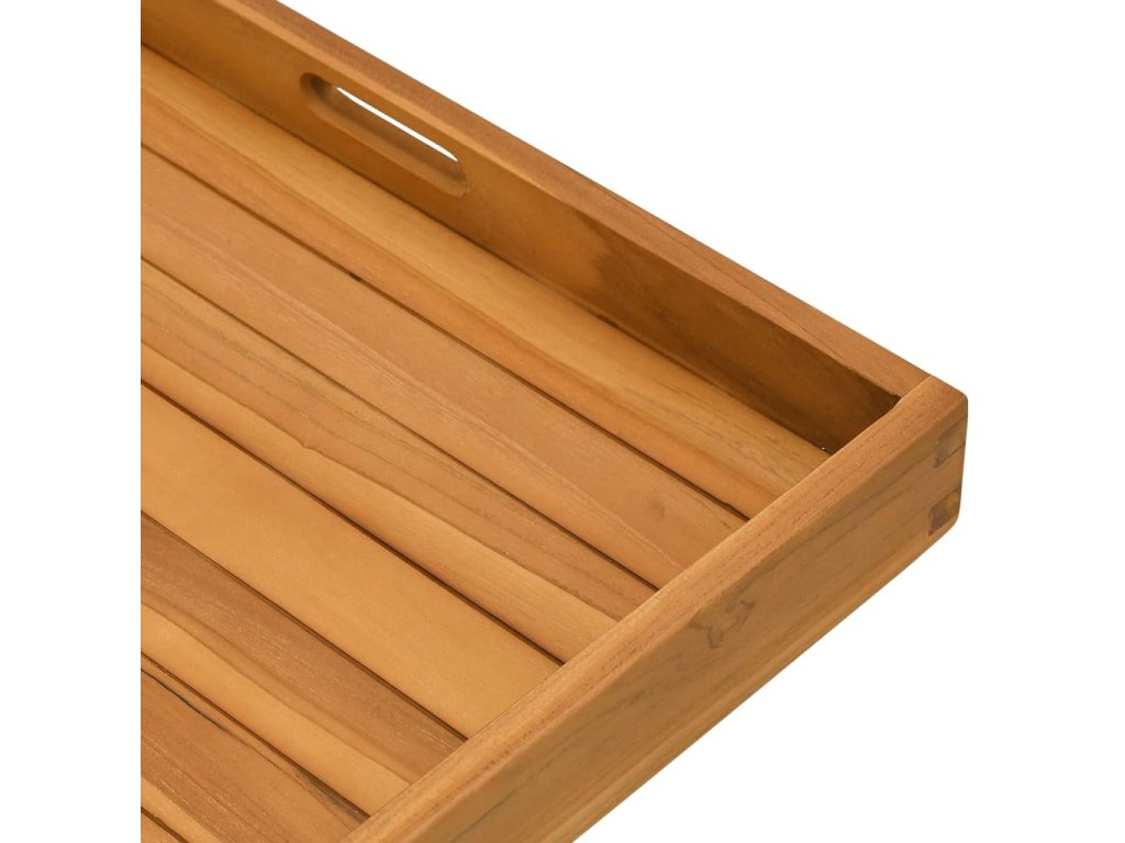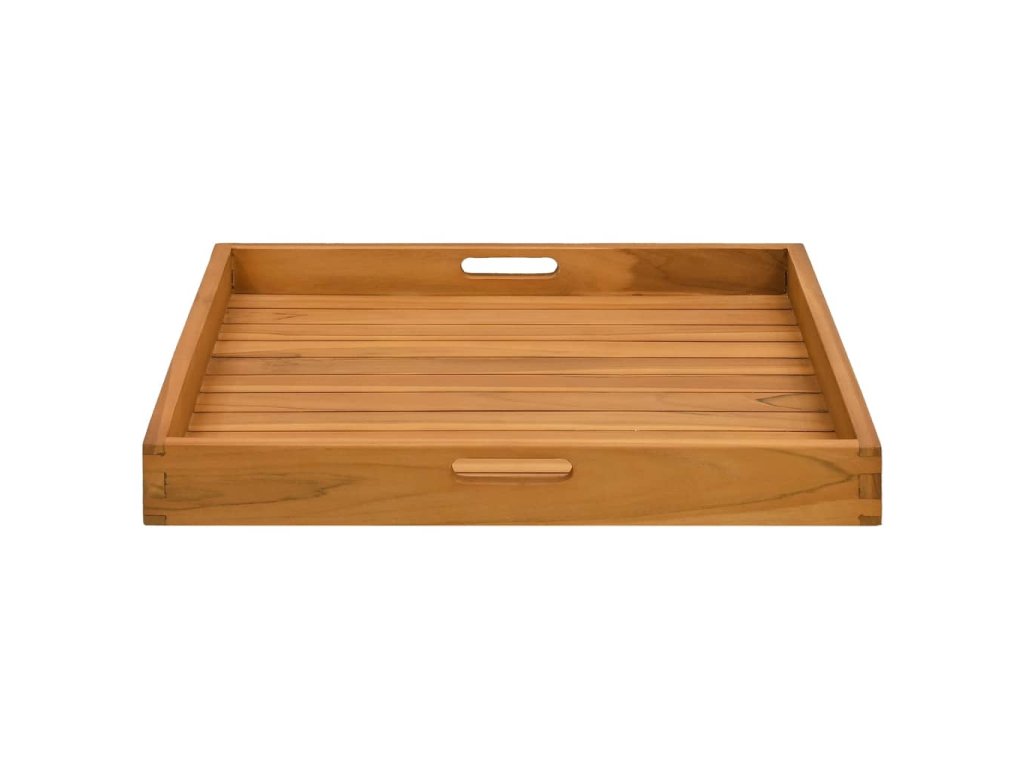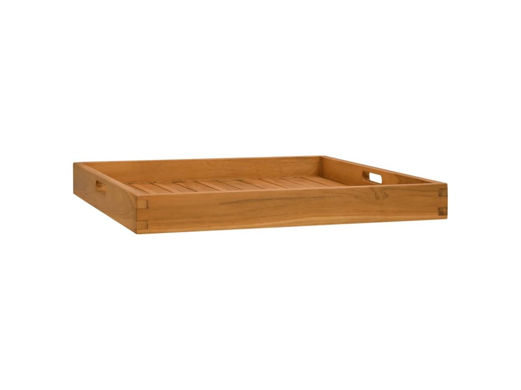 Tento klasický servírovací podnos je vyrobený zo skutočne odolného tvrdého tíkového dreva. Tento kus tíkového nábytku bol vyzretý, umelo vysušený a jemne opieskovaný, aby mal veľmi hladký vzhľad. Tíkový drevo je známe svojou výnimočnou pevnosťou a odolnosťou voči vplyvom počasia. Je dokonalou voľbou, ak hľadáte dlhotrvácny drevený podnos. Servírovacia tácka sa dá použiť v domácnosti ako ľahký a výrazný doplnok na zobrazenie dôležitých položiek.