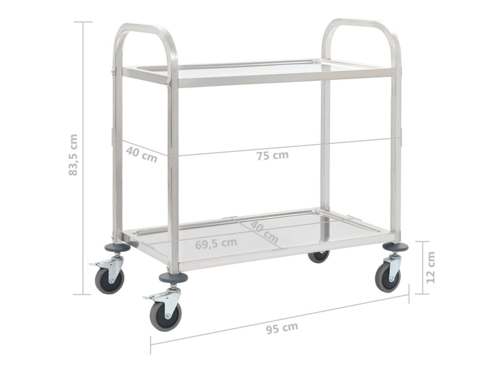 Veľké podnosy poskytujú dostatok priestoru na optimálne servírovanie jedál a nápojov. Vďaka rámu z nehrdzavejúcej ocele je servírovací vozík stabilný a pevný aj pri plnom zaťažení. Kolieska sa pohybujú plynule, a tak vám umožnia manipulovať s vozíkom bez námahy a potichu. Dve kolieska sú navyše vybavené brzdami, aby vozík zostal stáť na mieste, vďaka čomu ho budete môcť používať aj na odkladanie náradia či bežných domácich potrieb.