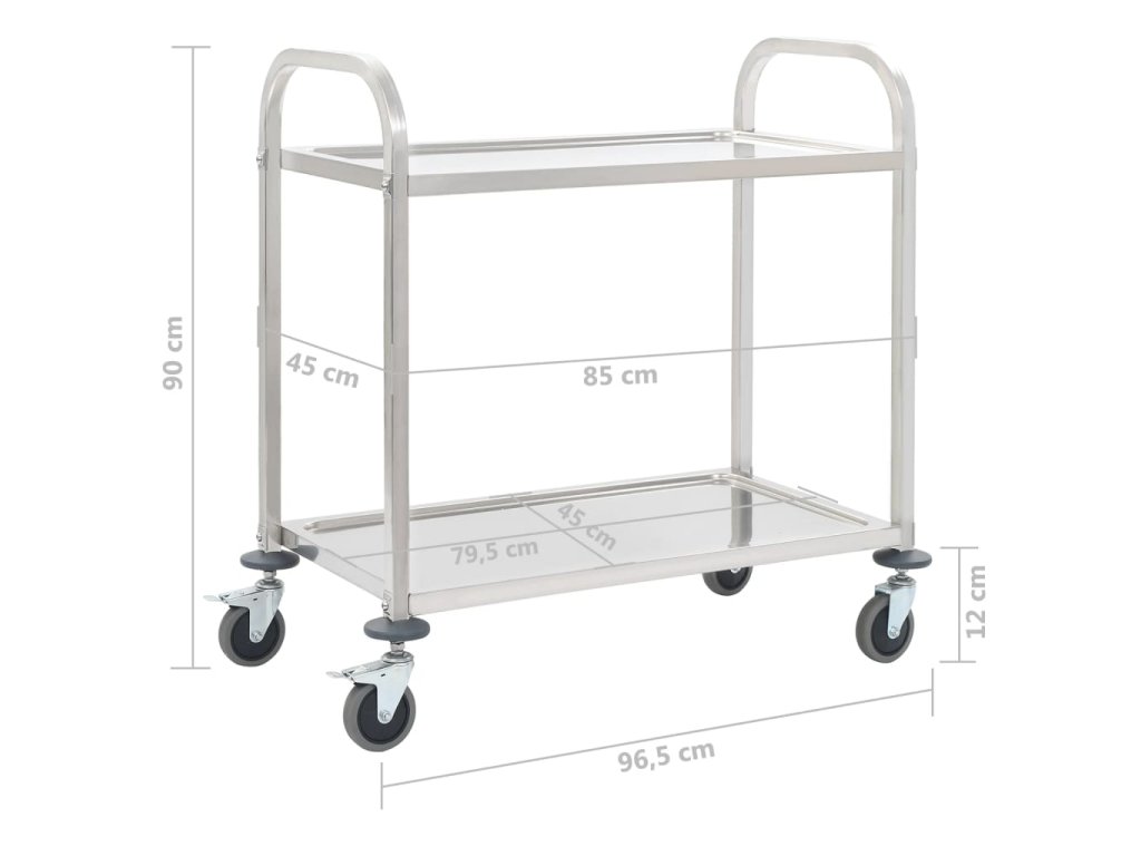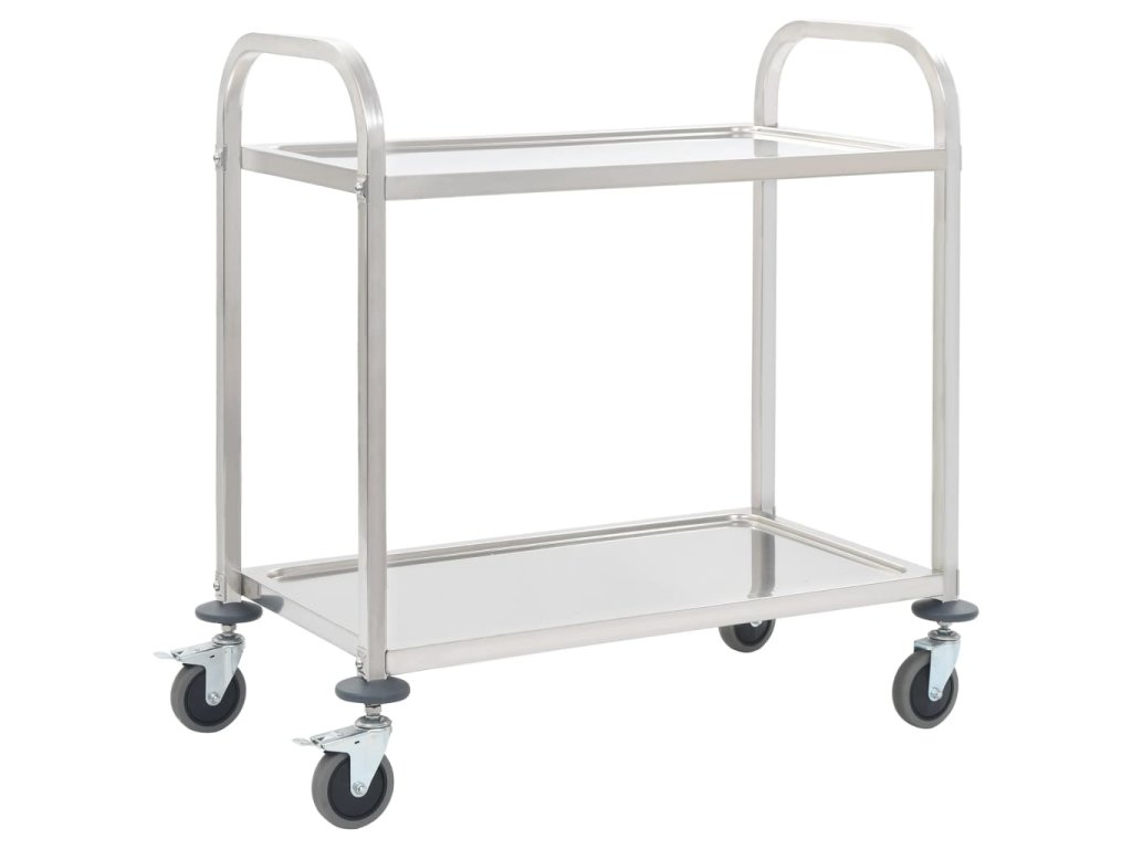 Veľké podnosy poskytujú dostatok priestoru na optimálne servírovanie jedál a nápojov. Vďaka rámu z nehrdzavejúcej ocele je servírovací vozík stabilný a pevný aj pri plnom zaťažení. Kolieska sa pohybujú plynule, a tak vám umožnia manipulovať s vozíkom bez námahy a potichu. Dve kolieska sú navyše vybavené brzdami, aby vozík zostal stáť na mieste, vďaka čomu ho budete môcť používať aj na odkladanie náradia či bežných domácich potrieb.