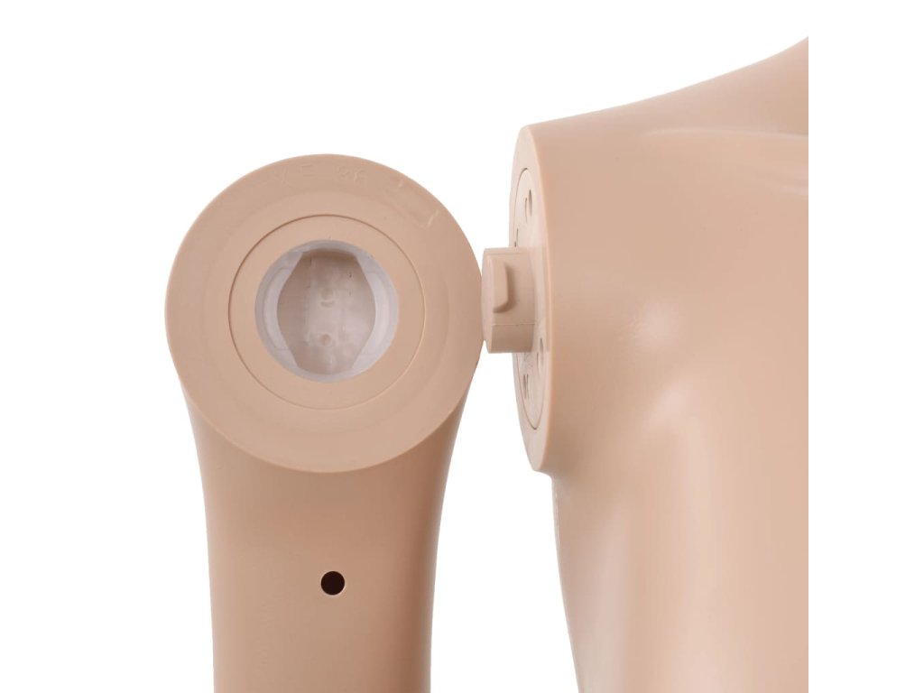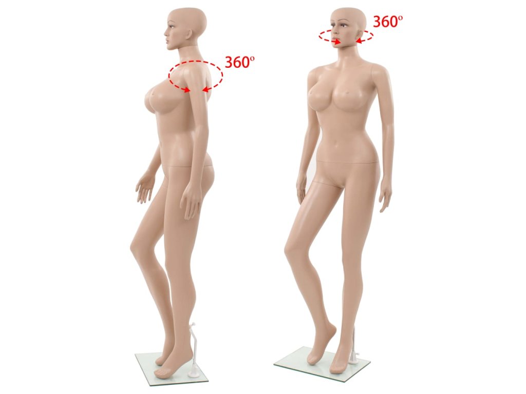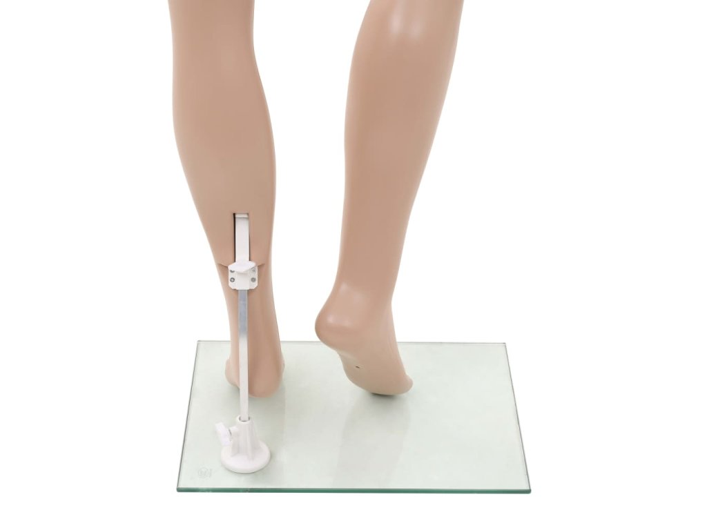 Figurína sa skladá zo 6 častí: hlava, trup, pravá noha, ľavá noha, ľavá ruka a pravá ruka. Hlava a ramená sa dajú otáčať o 360°, vďaka čomu môžete figurínu upraviť do rôznych polôh. Celé telo je vyrobené z polypropylénu, ktorý je ľahký a trvácny. Sklenený podstavec s hliníkovým stojanom zabezpečuje stabilitu a umožňuje vystavovať na figuríne aj obuv.
