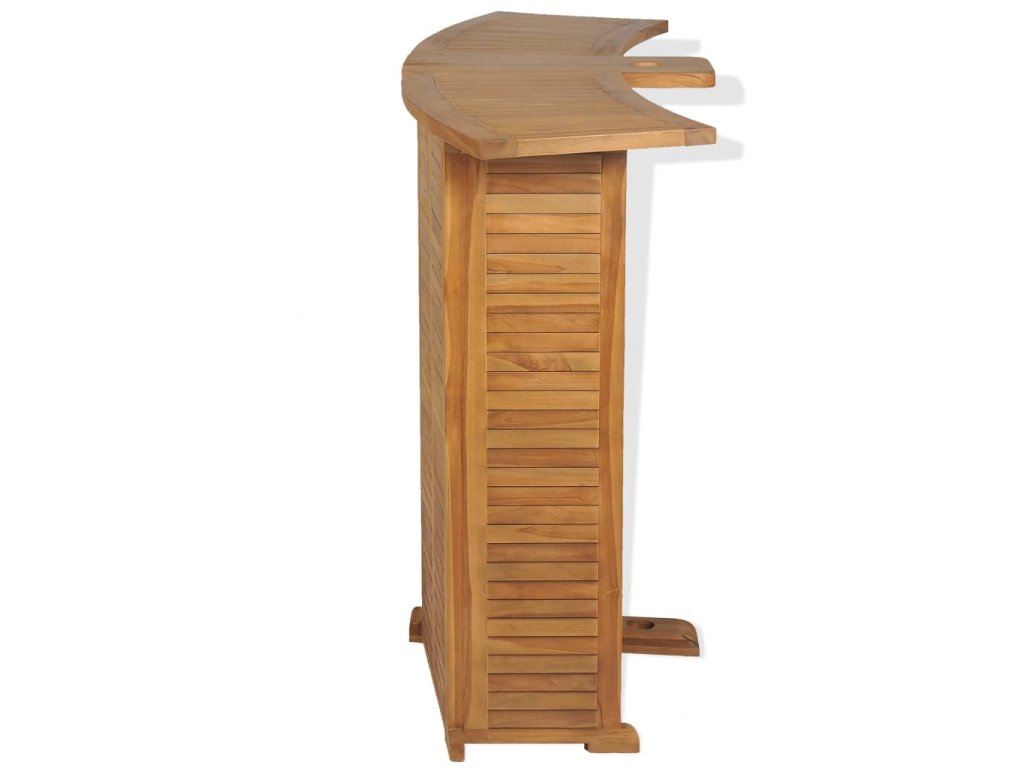 Stôl má otvor na slnečník, aby ste si mohli v tieni vychutnávať príjemný letný vánok. Barový stôl je vybavený držiakom na fľaše a odnímateľnými poličkami, aby ste si doň mohli odložiť potraviny, nápoje či iné potreby rôznych veľkostí. Barový stôl sa dá poskladať, aby nezaberal veľa miesta, keď ho nepoužívate. Montáž je jednoduchá.