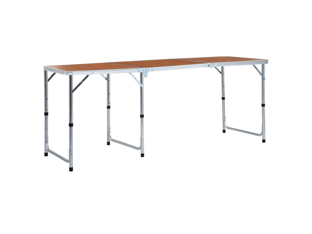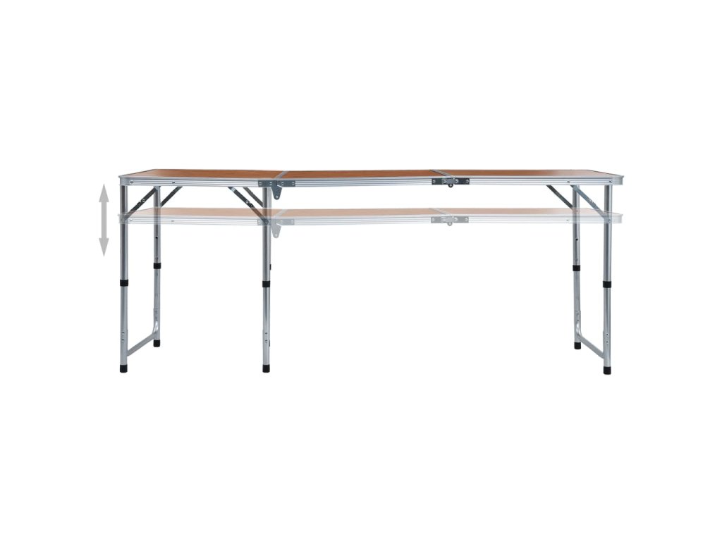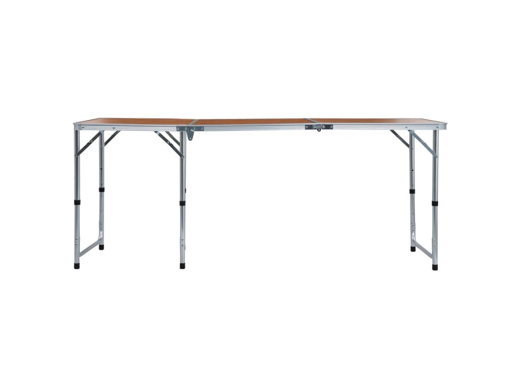 Tento skladací kempingový stôl s praktickou rukoväťou na prenášanie sa hodí do kuchyne, na terasu, do záhrady a na pikniky alebo kempovanie. Výška stola sa dá nastaviť na 55 cm, 62 cm a 70 cm.