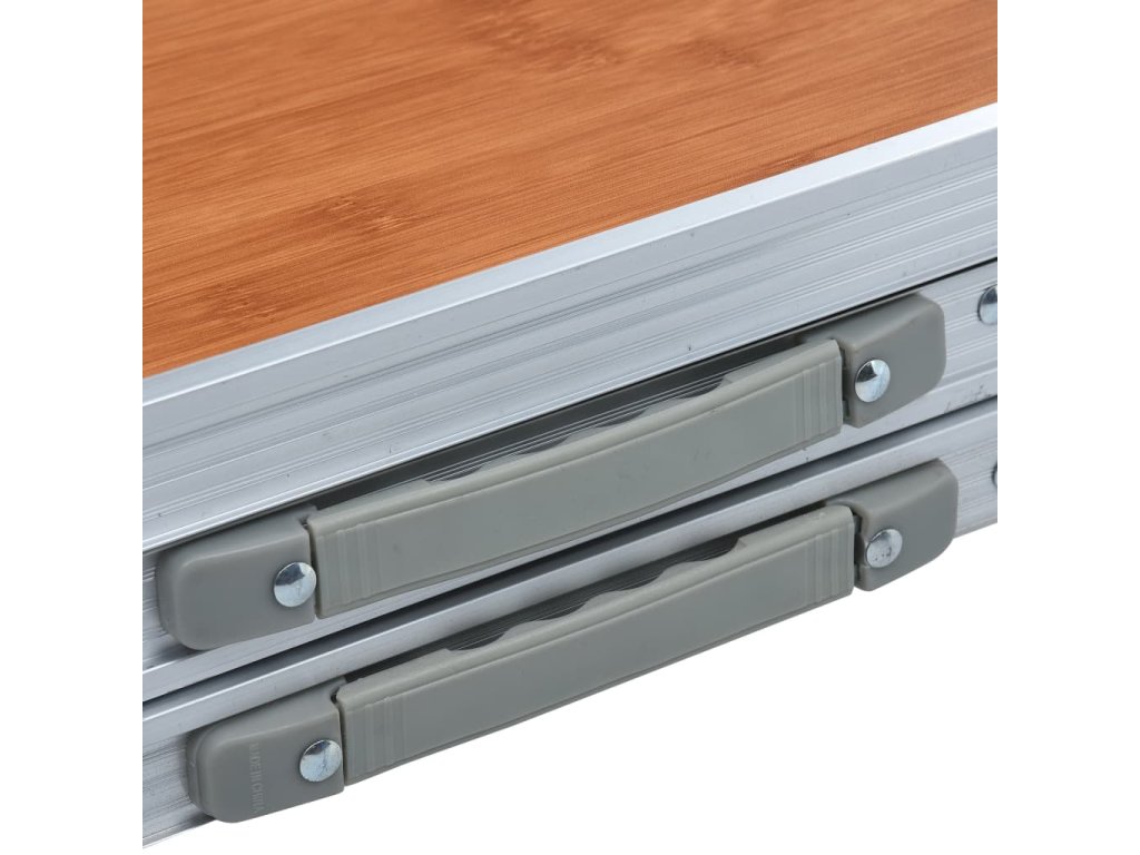 Kempingový stôl je ľahký. Vďaka skladaciemu dizajnu sa tento kempingový stôl ľahko prepravuje a dá sa rýchlo zložiť, keď sa nepoužíva. Rukoväť uľahčuje jeho prenášanie, keď idete na piknik alebo kempovať. Vďaka pevnej konštrukcii má tento kempingový stôl vysokú nosnosť až 30 - 50 kg a vďaka kovovému rámu a pevnej doske MDF je vysoko stabilný a odolný