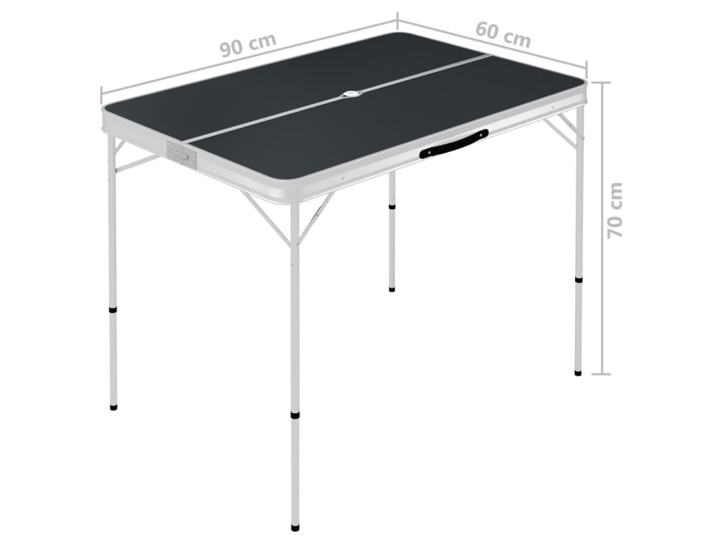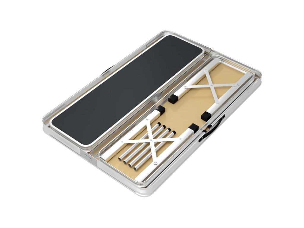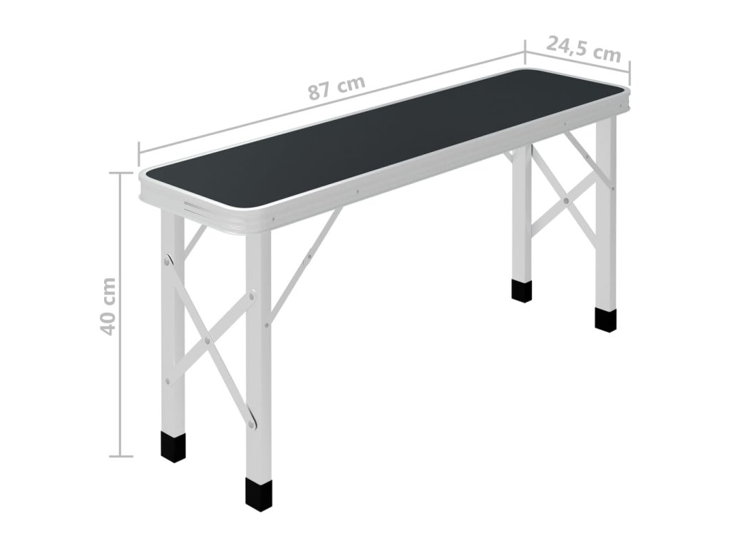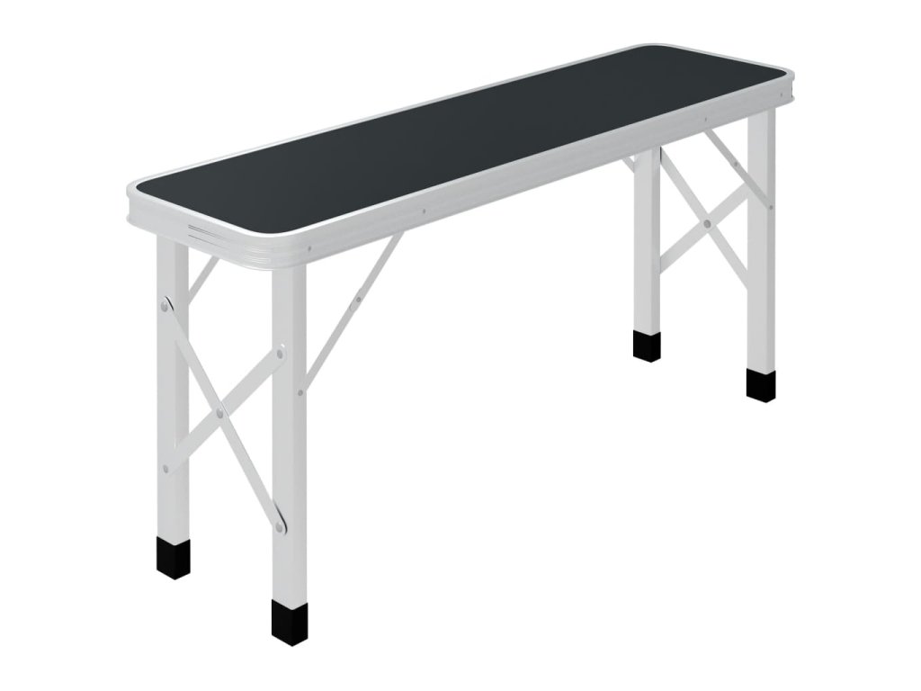 Tento stôl je vyrobený z ľahkého hliníka a stolovej dosky z MDF a dá sa jednoducho rozložiť, ľahko sa nastavuje a rýchlo sa čistí. Vďaka pevnému rámu a doske je tento stôl pevný a odolný. Kempingový stôl a lavice sú skladacie, čo uľahčí prepravu a skladovanie. Lavičky sa navyše dajú integrovať do stola, aby sa ušetril priestor.