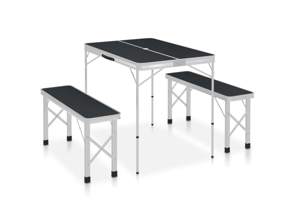 V balení sa nachádza 1 kempingový stôl a 2 lavice.