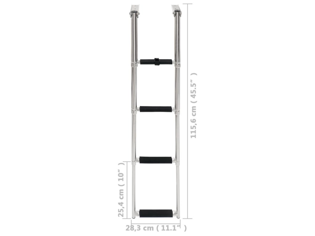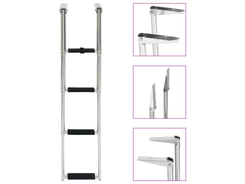 Vďaka výraznej teleskopickej konštrukcii sa rebrík môže rýchlo a ľahko zložiť, aby vám pomohol bezpečne sa nalodiť. Každý stupienok má protišmykový dezén pre maximálne bezpečie. Rebrík bol vyrobený z pevnej nehrdzavejúcej ocele, a ponúka dlhú životnosť. Jeho nosnosť je 250 kg. Ak schodíky nepoužívate, môžete ich upevniť popruhom. Montážne príslušenstvo sa nachádza v balení.