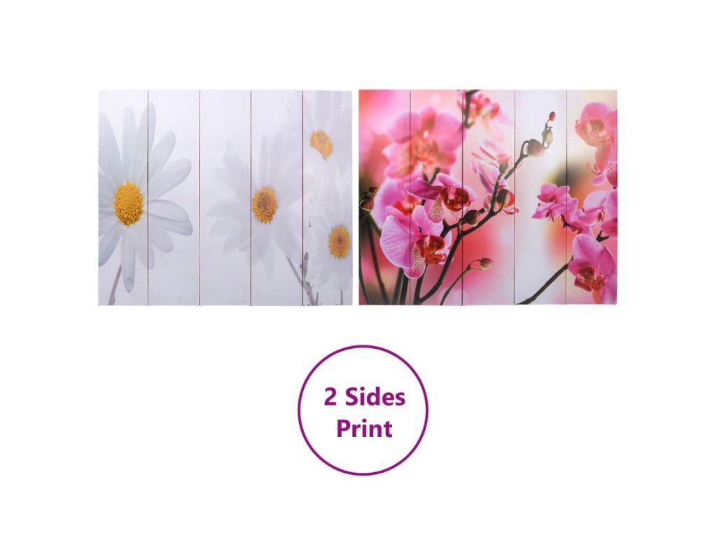 Tento paraván má z oboch strán inú potlač. Priestorová zábrana sa dá otočiť, čím vždy poskytne inú atmosféru. Pozrite si obrázky, ako potlač vyzerá. Paraván sa dá pre jednoduché skladovanie a prepravu zložiť.