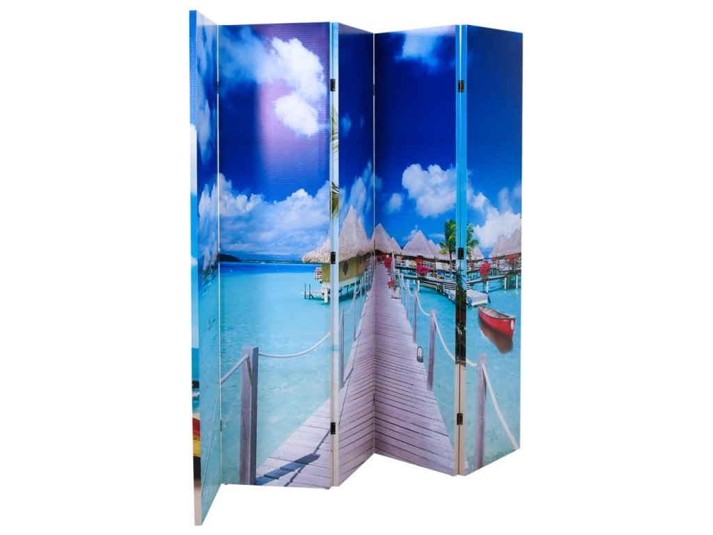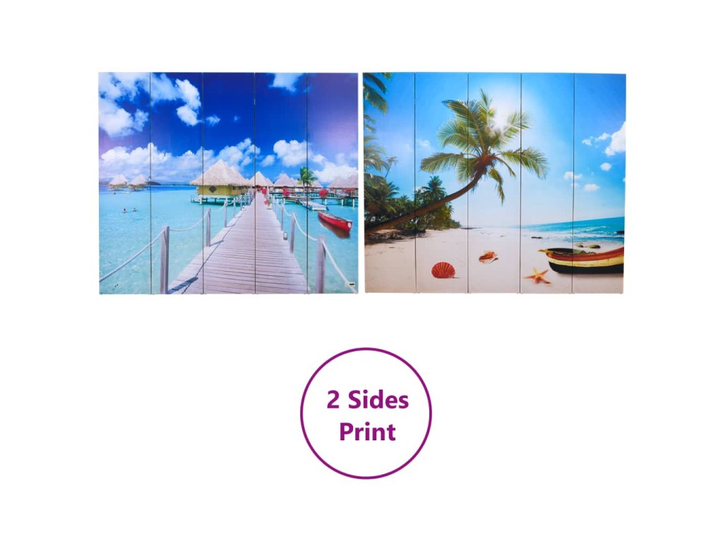Tento paraván má z oboch strán inú potlač. Priestorová zábrana sa dá otočiť, čím vždy poskytne inú atmosféru. Pozrite si obrázky, ako potlač vyzerá. Paraván sa dá pre jednoduché skladovanie a prepravu zložiť.