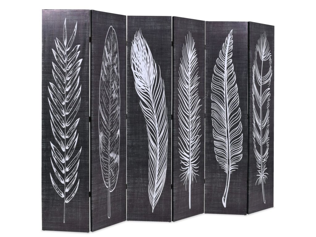 Paraván s rámom z dreveného masívu je pokrytý trvácnym plátnom, na ktorom sa z obidvoch strán nachádza sofistikovaná fototlač s motívom pierok, a tak vnesie do vašej izby nádych elegancie. Paraván sa dá jednoducho poskladať, aby ste ušetrili miesto, keď sa nepoužíva.