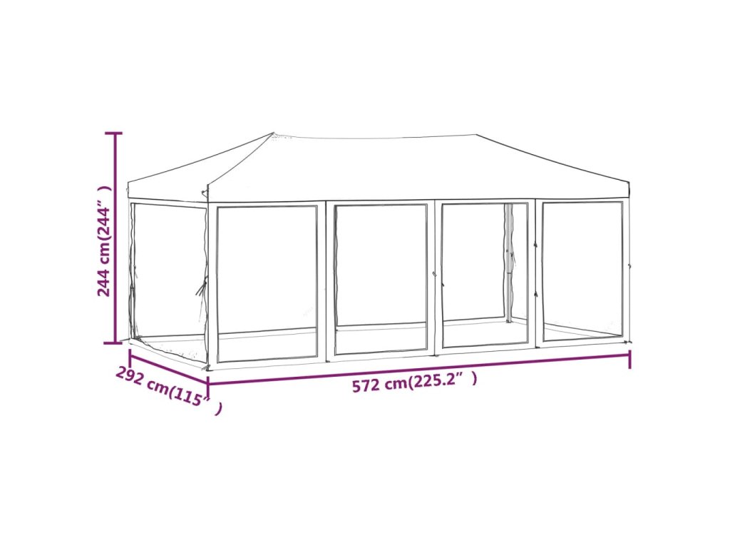 - Celkové rozmery: 572 x 292 x 244 cm (D x Š x V)