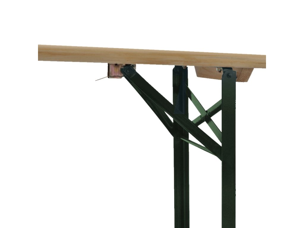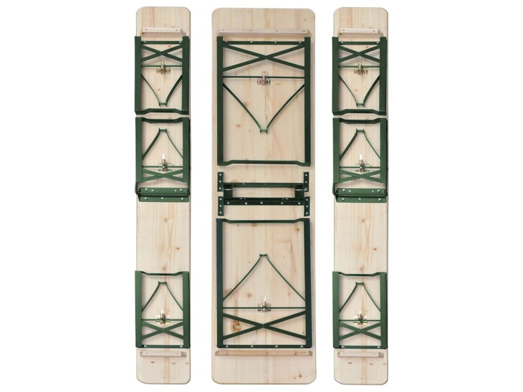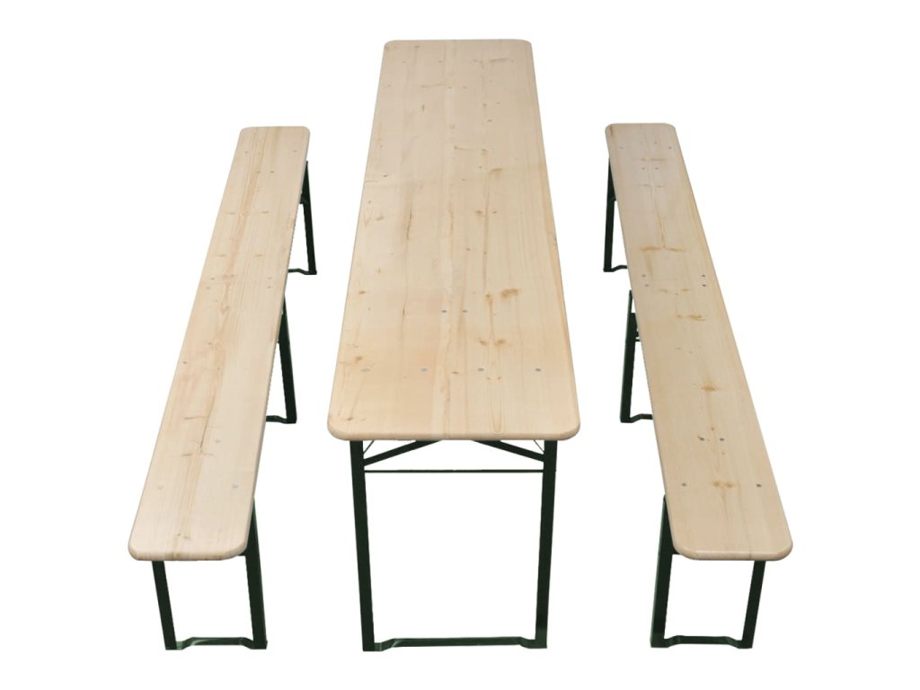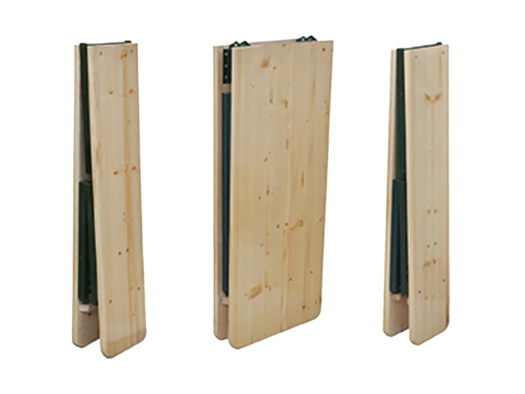 Stôl a lavice sa dajú poskladaž, aby nezaberali veľa miesta pri skladovaní. Súprava je vyrobená z čínskej jedle a kovu, vďaka čomu je odolná a veľmi trvácna.
