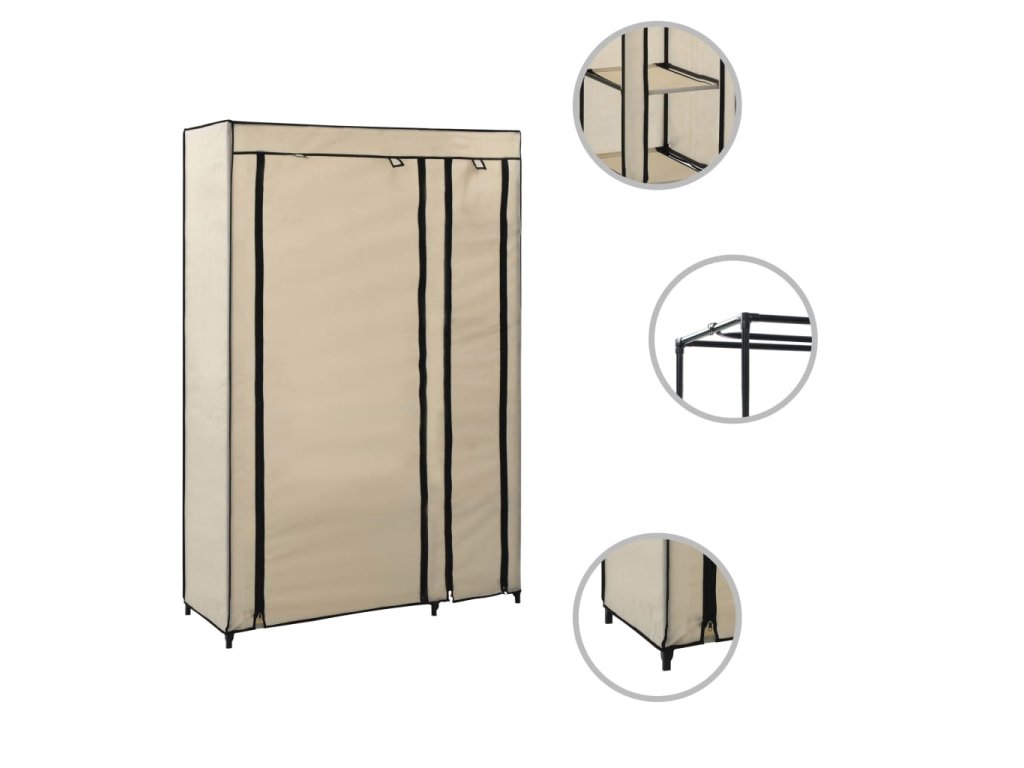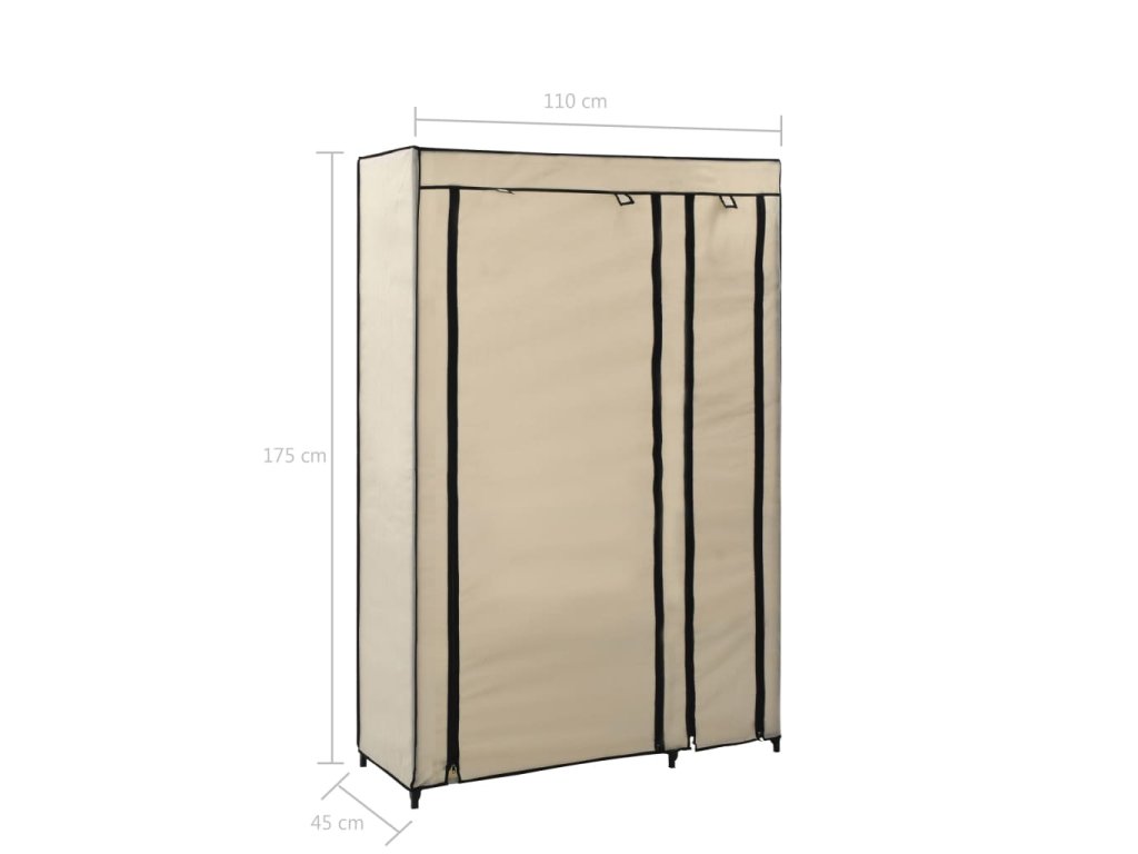 Tento šatník vám poskytne skvelé miesto na odkladanie oblečenia. Vďaka skladaciemu dizajnu nezaberá veľa miesta a jednoducho sa montuje. Dvierka sa dajú jednoducho zrolovať a upevniť pomocou suchého zipsu, vďaka čomu sa vaše oblečenie nezašpiní a nebude naň sadať prach. Pomocou zipsu môžete dvierka rýchlo zatvárať a otvárať. Steny šatníka sú vyrobené z fleecovej látky a rám pozostáva z oceľových rúrok.
