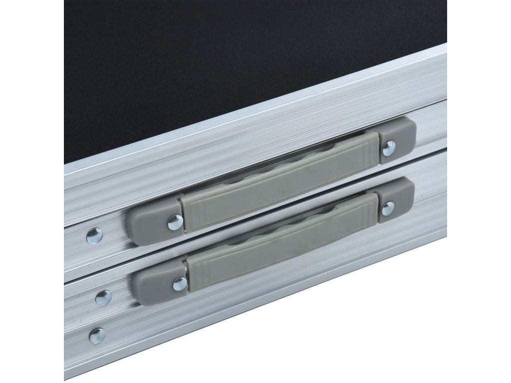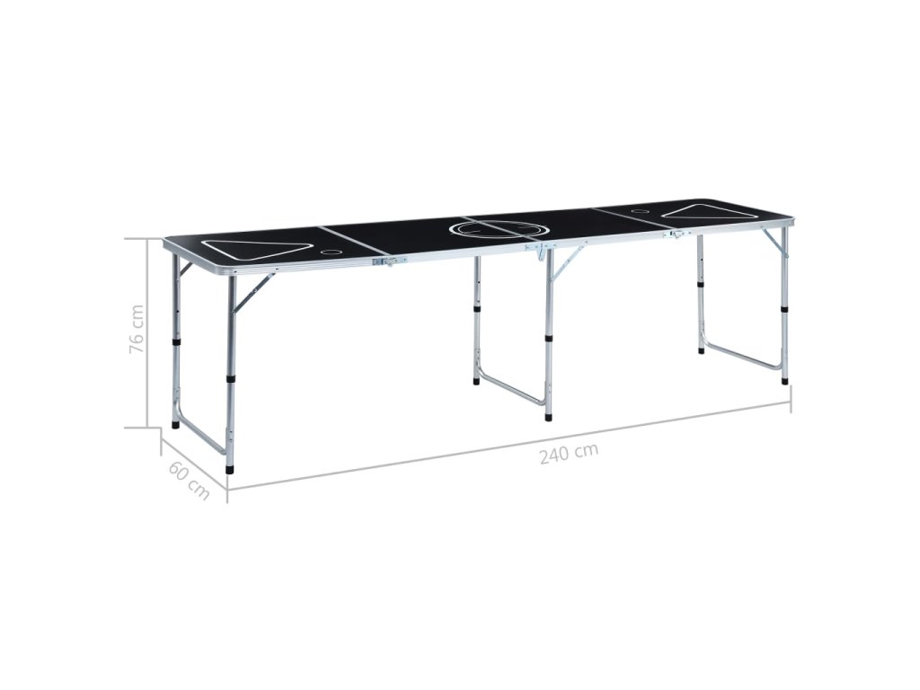 Tento stôl je vyrobený z masívneho a ľahkého hliníkového rámu. Dá sa rozložiť a zložiť za pár sekúnd, a je aj stabilný a trvácny. Odolná nepremokavá hracia plocha v dvojfarebnej potlači vydrží aj tie najdivokejšie párty. Nastaviteľná výška vyhovuje vašim špecifickým potrebám. Dá sa zložiť do kompaktnej veľkosti a uložiť do kufríka, takže si ho môžete vziať kamkoľvek. Rúčky sú pribalené pre jednoduché prenášanie.