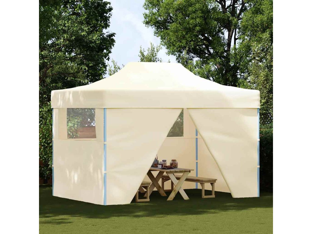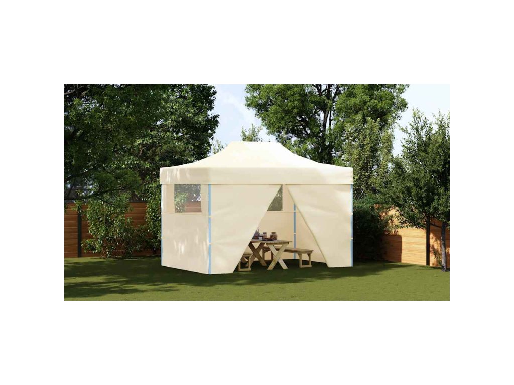 Tento rozkladací stan je vyrobený z odolnej ocele s práškovu povrchovou úpravou, vďaka čomu je naozaj trvácny. Striešku tvorí oxfordská látka s vrstvou PVC, ktorá je je 100% vodoodolná a poskytuje ochranu pred UV žiarením. Stan má štyri bočné steny a na jednej z nich sa nachádza dva vchod na zips, ktorý umožňuje jednoduchý prístup dovnútra. Skladací stan sa dá jednoducho skladovať a prepraviť.