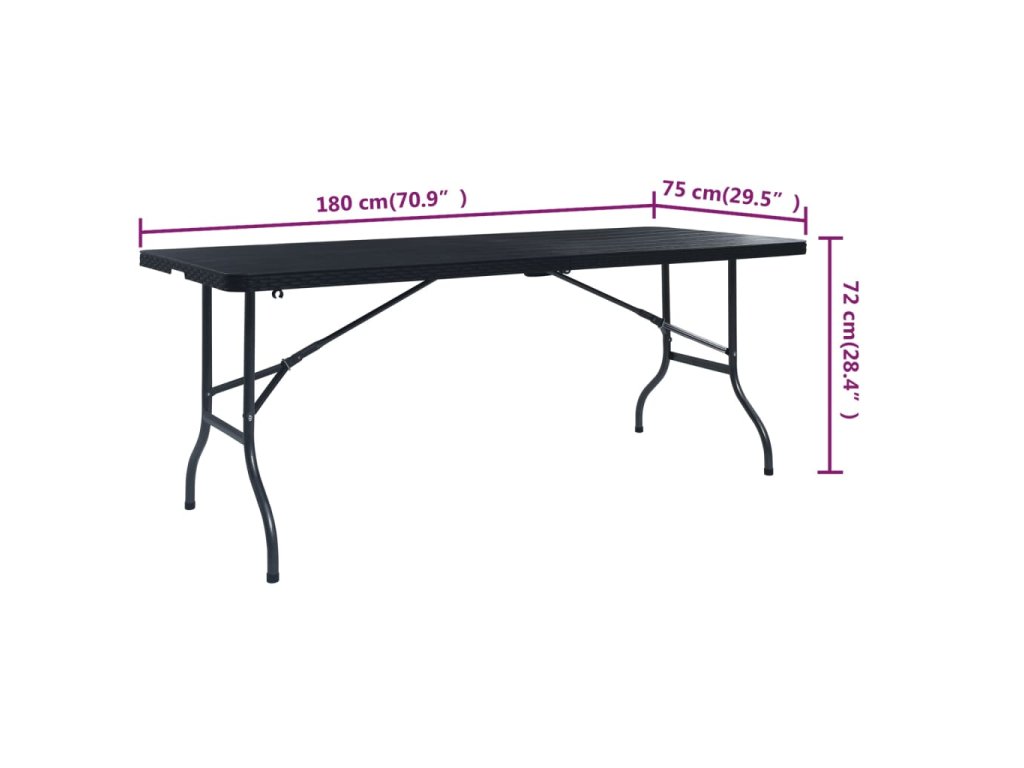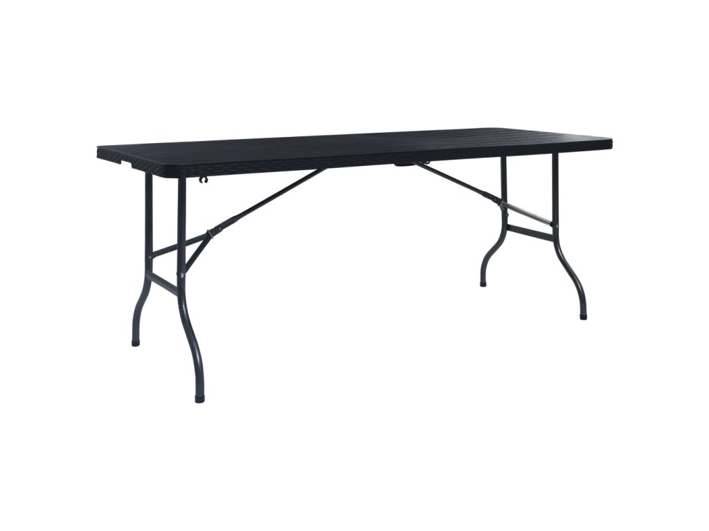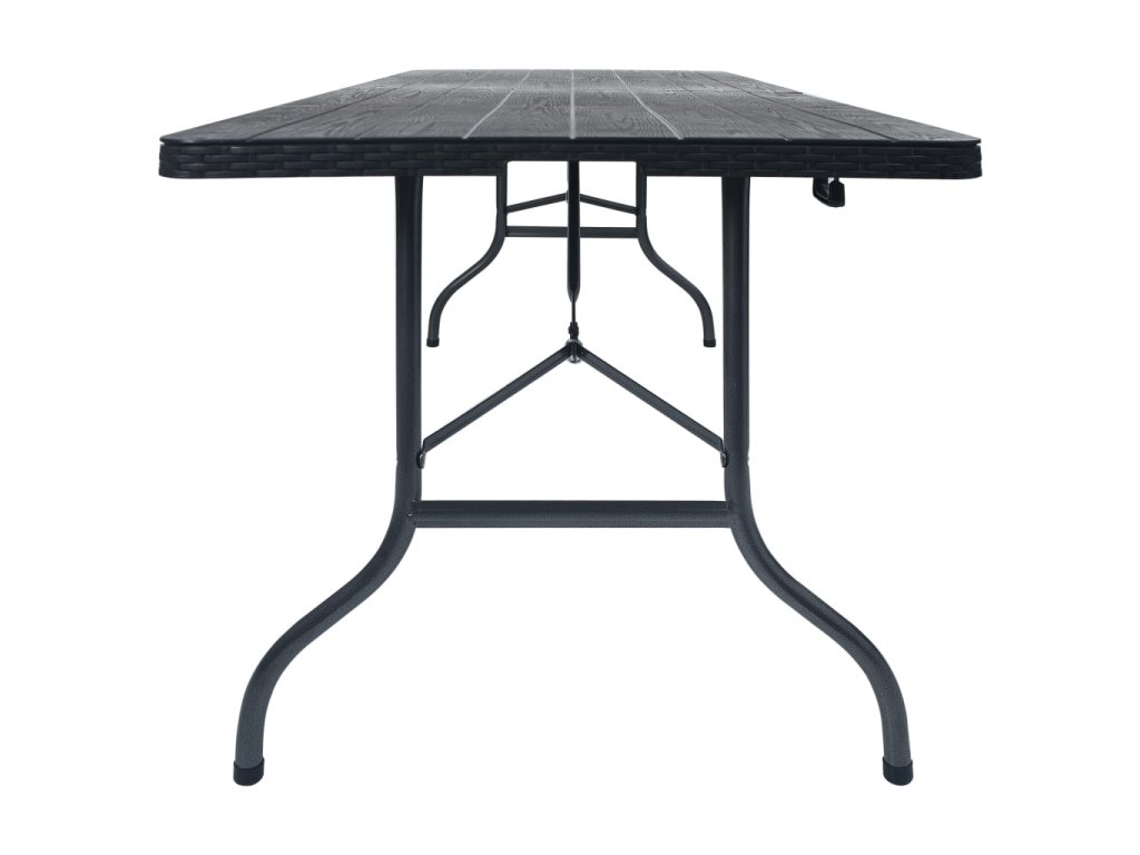 Tento skladací stôl so štýlovým ratanovým dizajnom je ako stvorený na pikniky, oslavy či stanovačky. Kompaktný záhradný stôl je dlhý 180 cm, a tak poskytuje dostatok miesta na odkladanie piknikových košíkov, kuchynských riadov, potravín a podobne.