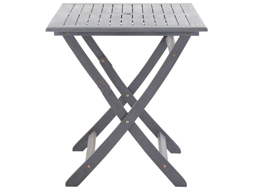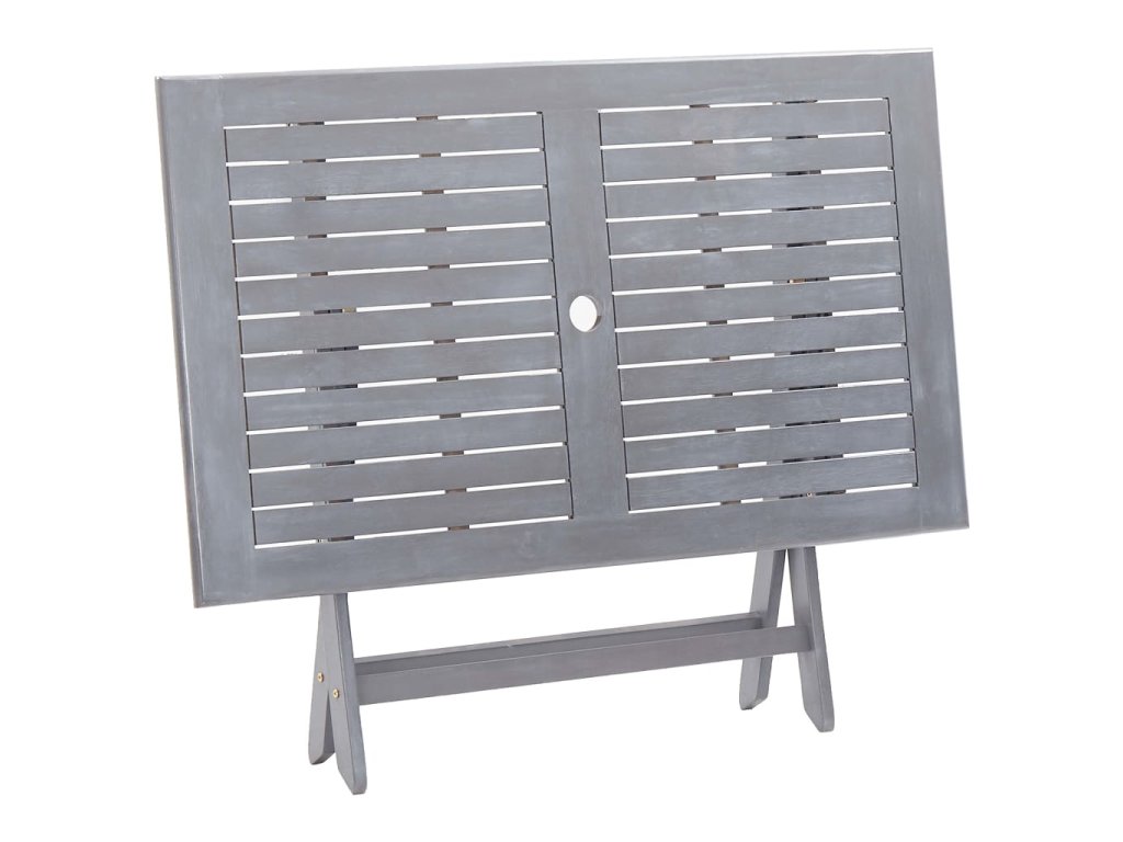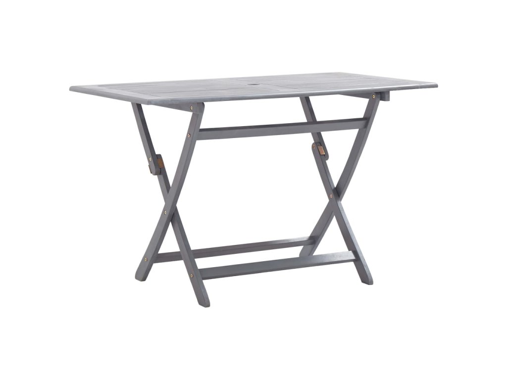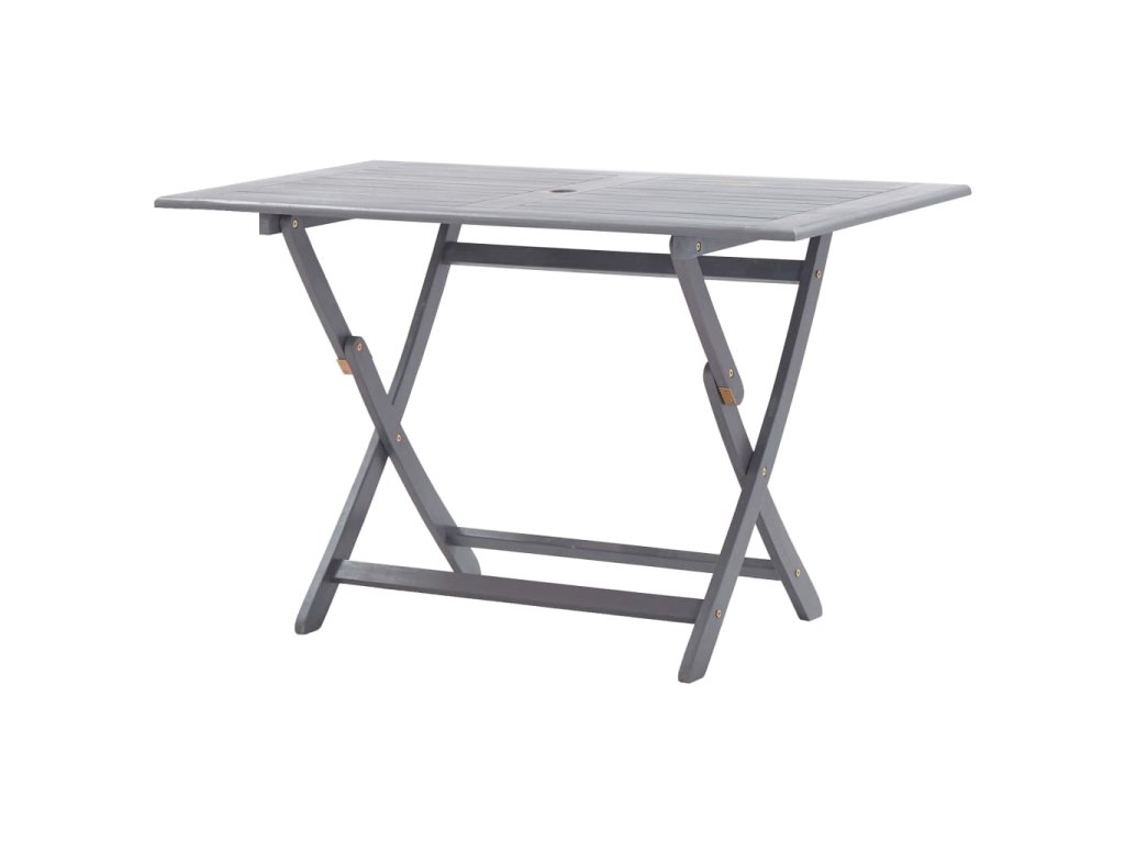 Vonkajší jedálenský stôl je vyrobený z akáciového masívu, tropického tvrdého dreva, ktoré je veľmi trvácne a odolné voči poveternostným vplyvom. V strede stola sa nachádza otvor na pevné uchytenie slnečníka. Vonkajší stôl sa dá jednoducho poskladať, aby nezaberal veľa miesta, keď sa nepoužíva. Jedálenský stôl je potrebné zmontovať.