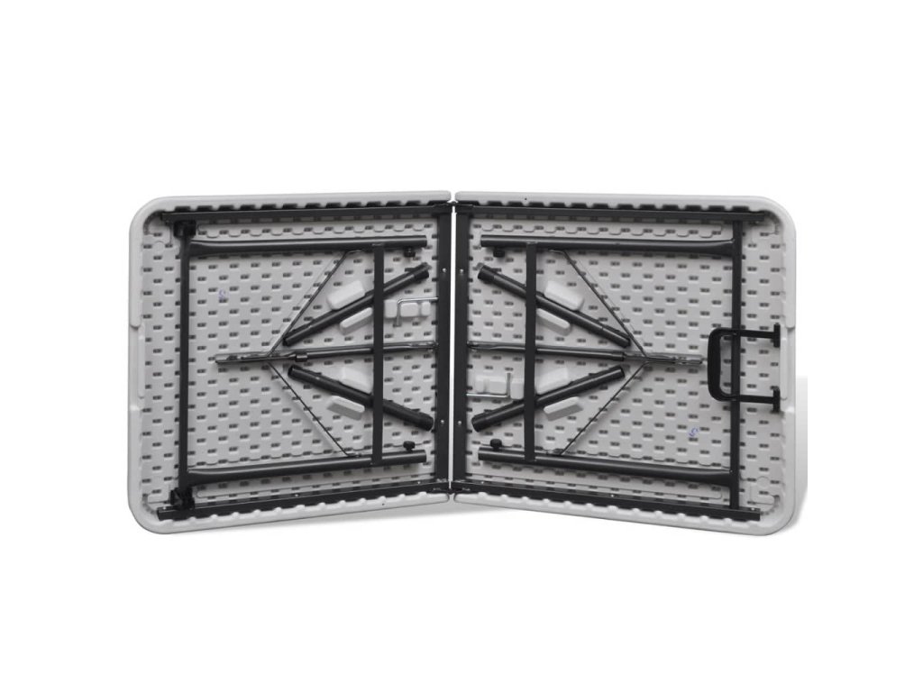 Oceľová konštrukcia dodáva stolíku vysokú stabilitu a dlhú životnosť. Doska stola je vyrobená z plastu HDPE (polyetylénu s vysokou hustotou), ktorý je vodovzdorný, odolný voči poveternostným vplyvom a dá sa jednoducho očistiť. Stôl je ľahký, takže nebudete mať žiadne problémy s jeho prepravou. Keď ho nepoužívate, stačí ho poskladať a odložiť bez toho, aby zaberal zbytočne veľa miesta. Poskladaný stôl sa dá navyše bez námahy preniesť vďaka praktickej rúčke, ktorá sa nachádza v bočnej časti.