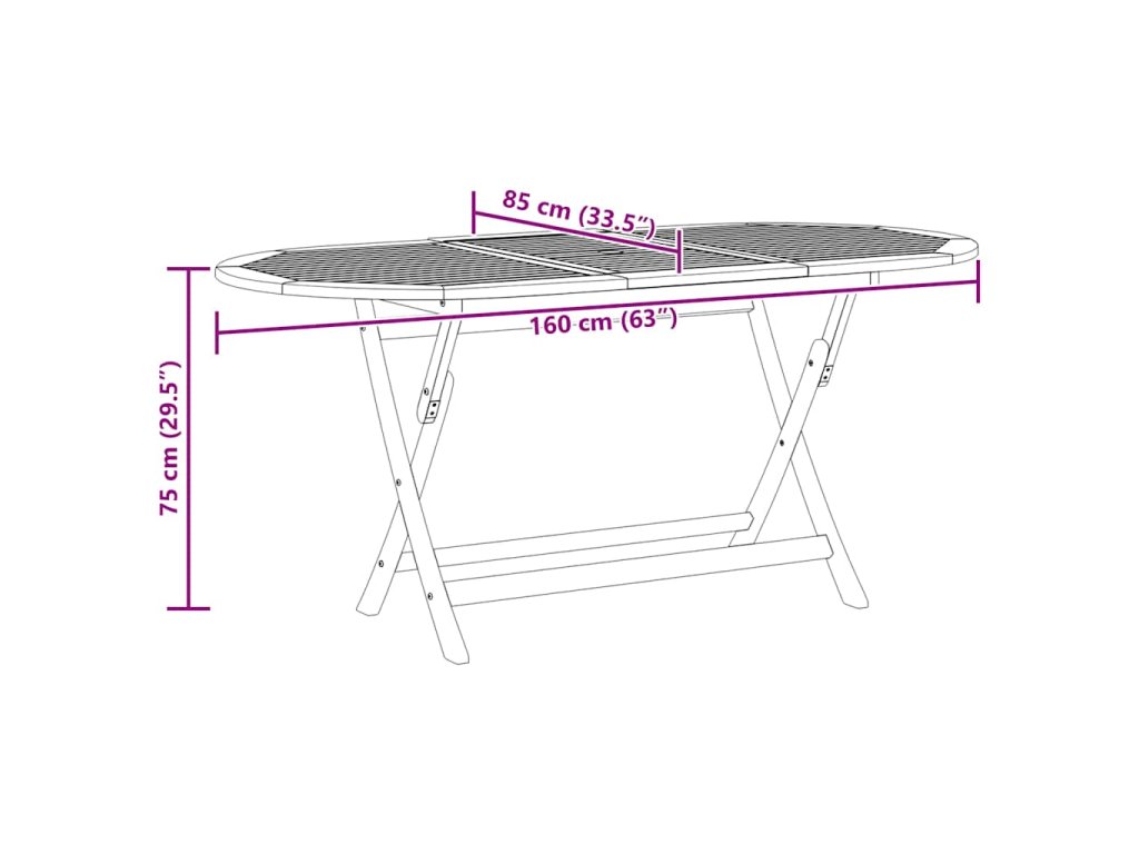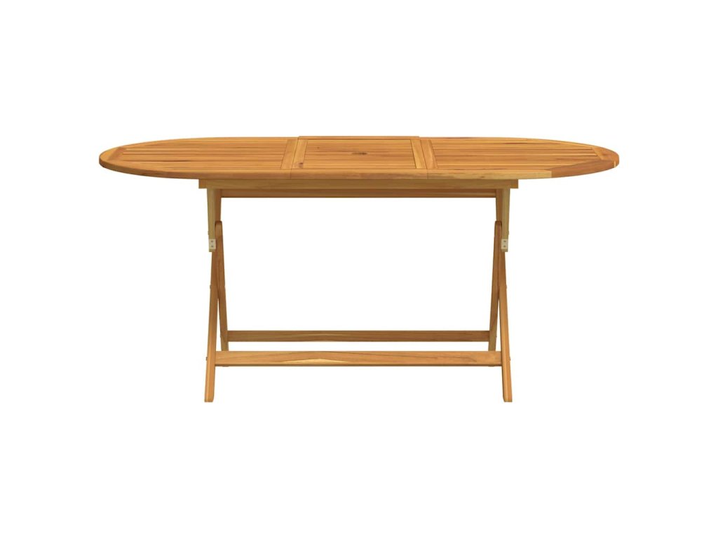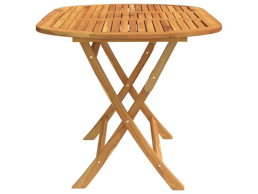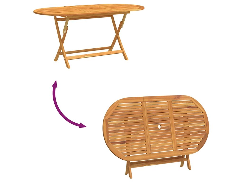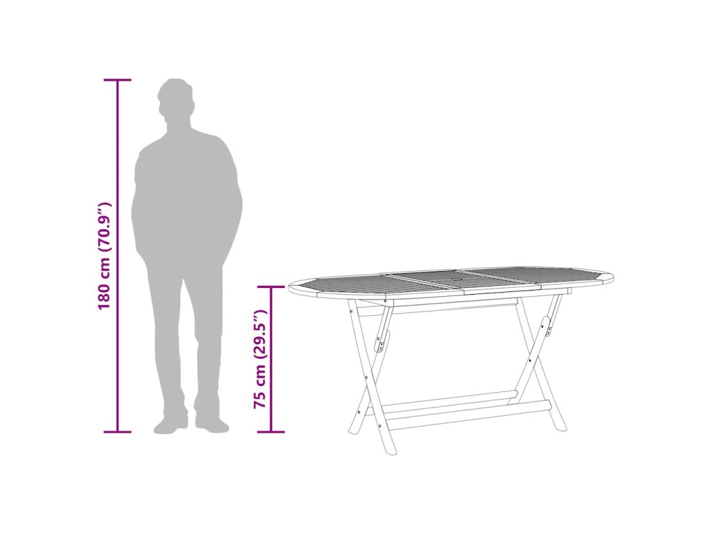 Jedálenský stôl je vyrobený z eukalyptového dreva, ktoré sa vyznačuje svojou odolnosťou voči poveternostným vplyvom a dlhou životnosťou. Povrch s olejovým náterom má jemný vzhľad a sa dá ľahko očistiť pomocou navlhčenej handričky. Stôl sa dá poskladať, aby nezaberal veľa miesta, keď sa nepoužíva.