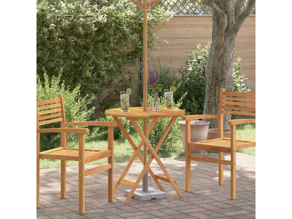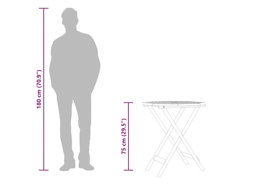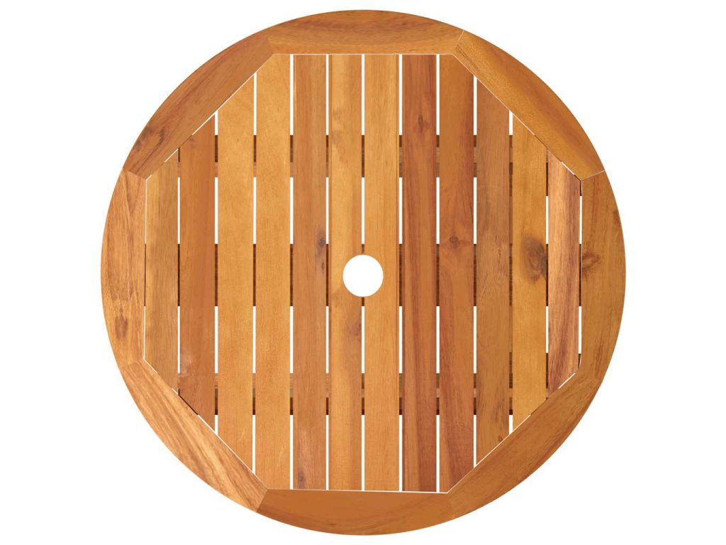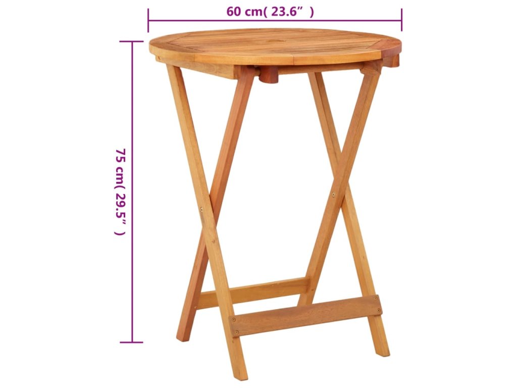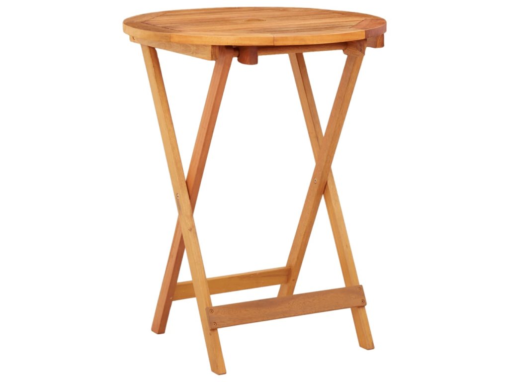 Jedálenský stôl je vyrobený z eukalyptového dreva, ktoré sa vyznačuje svojou odolnosťou voči poveternostným vplyvom a dlhou životnosťou. Povrch s olejovým náterom má jemný vzhľad a sa dá ľahko očistiť pomocou vlhkej handričky. Stôl sa dá poskladať, aby nezaberal veľa miesta, keď sa nepoužíva. Má tiež otvor na dáždnik.
