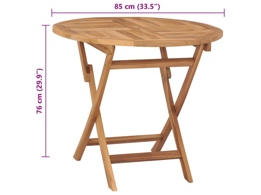 Stôl je okrem toho odolný aj voči vlhkosti a hmyzu. Jeho povrch sa dá ľahko očistiť navlhčenou handričkou. Stôl sa navyše dá poskladať, aby ste ho mohli bez problémov odložiť alebo preniesť, keď sa nepoužíva. Krásna povrchová úprava drevu dodáva teplý farebný odtieň. Vonkajší jedálenský stôl sa jednoducho montuje.