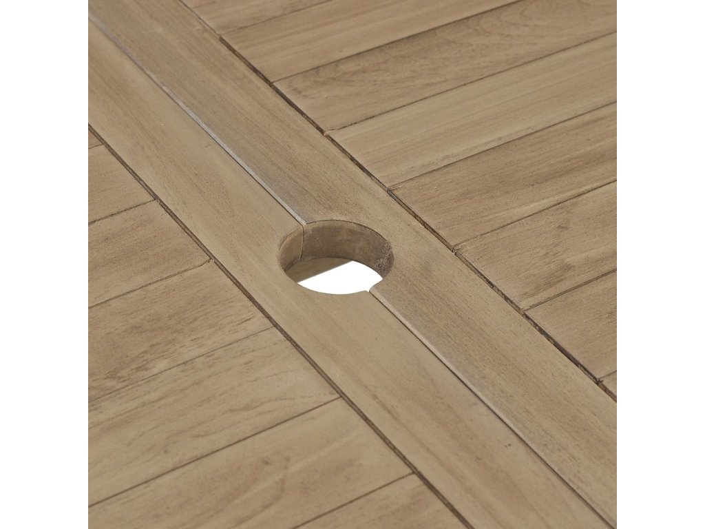 - Otvor na slnečník: Na doske stola je otvor pre slnečník, takže môžete jednoducho pripevniť slnečník a vytvoriť tak tienisté miesto.