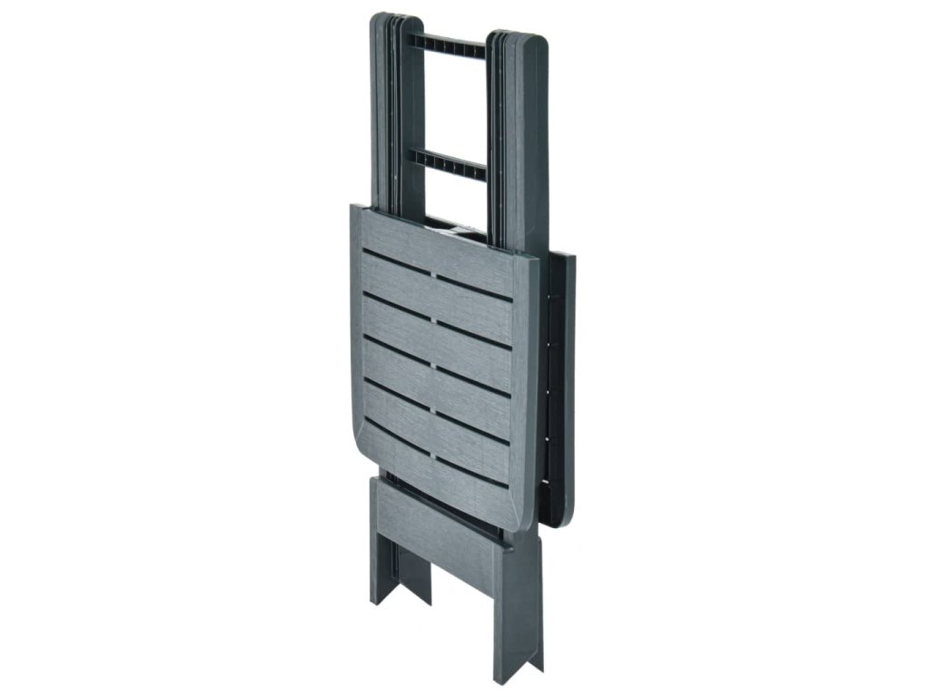 Tento stôl prinesie do vašej terasy, záhrady alebo iného vonkajšieho priestoru dotyk šarmu! Tento záhradný stôl je vyrobený z trvácneho, bezúdržbového plastu odolného voči poveternostným vplyvom, ktorý je vhodný na každodenné použitie. Stolová doska s roštovým dizajnom mu dodáva extra eleganciu. Ak sa stôl nepoužíva, môžete ho sklopiť, aby sa ušetrilo miesto. Nevyžaduje sa žiadna montáž.
