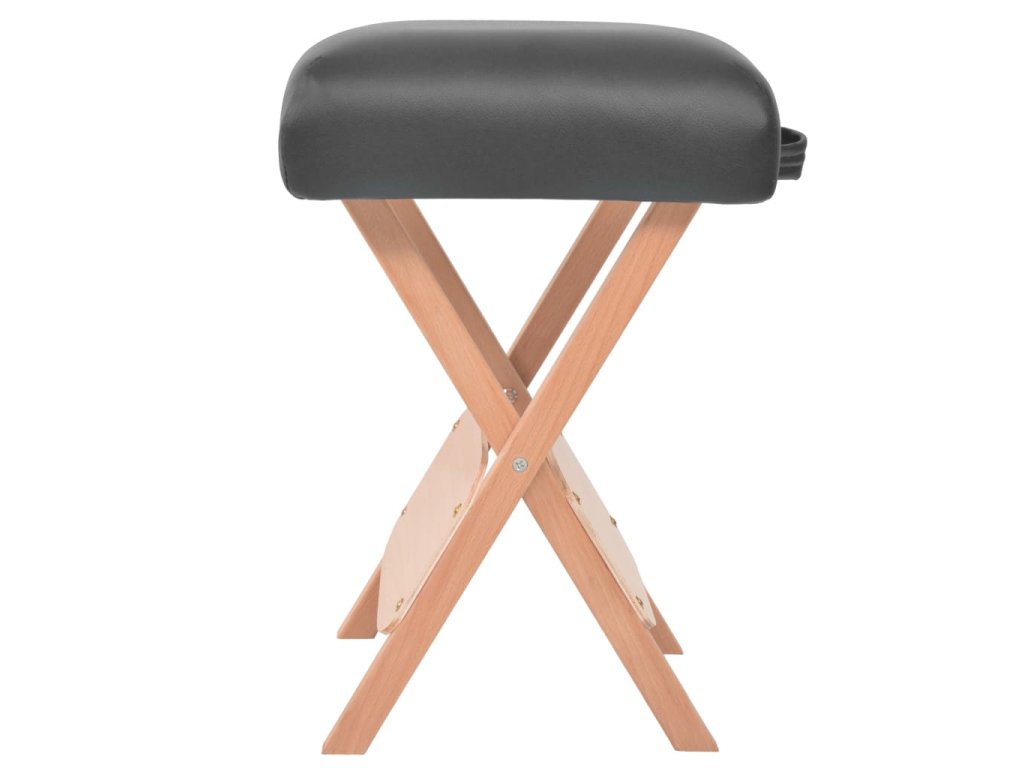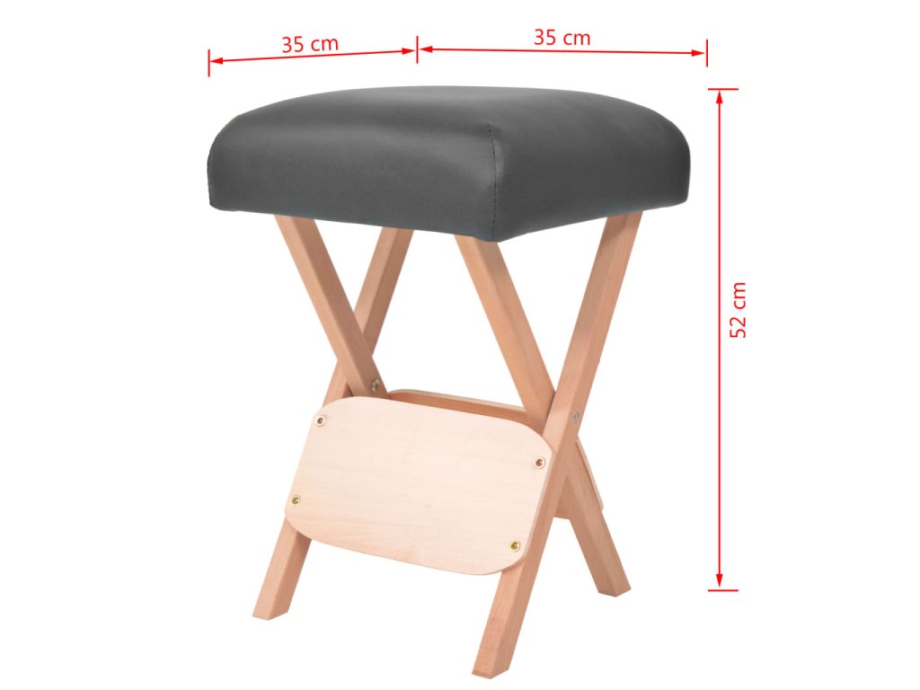 Táto masážna stolička má pevný drevený rám a je čalúnená kvalitným PVC materiálom. Má luxusné, extra husté sedadlo, ktoré poskytuje maximálny komfort pri sedení. Táto masážna stolička sa dá zložiť pre jednoduché skladovanie a prepravu. Pribalené dve podložky v rôznych tvaroch je možné použiť na rôzne účely. Môžu byť umiestnené pod kolená, členky alebo brucho na podporu alebo polohovanie.