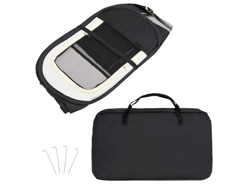 Táto ohrádka s rozmermi 145x145x61 cm je ideálna na použitie doma alebo na cestách. Súčasťou je aj taška na prenášanie pre praktické uskladnenie. Je ľahká, ale napriek tomu veľmi odolná vďaka oceľovému rámu. Sieťovinová strecha a dvierka sa dajú rýchlo otvoriť alebo zatvoriť pomocou zipsu. Bočné sieťky zaisťujú dobrú cirkuláciu vzduchu a skvelú viditeľnosť. Vrecká sú vhodné na uloženie rôznych drobností, napríklad hračiek. Ak sa ohrádka nepoužíva, dá sa zložiť.