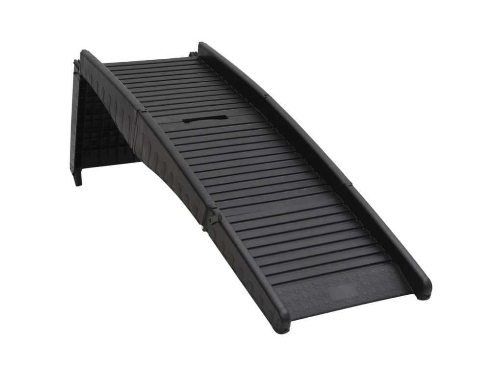 - Jednoduché skladanie: Rampa do auta pre psa sa dá jednoducho zložiť na polovicu, aby sa ušetril úložný priestor. Bezpečná západka drží rampu zatvorenú, keď sa nepoužíva.
