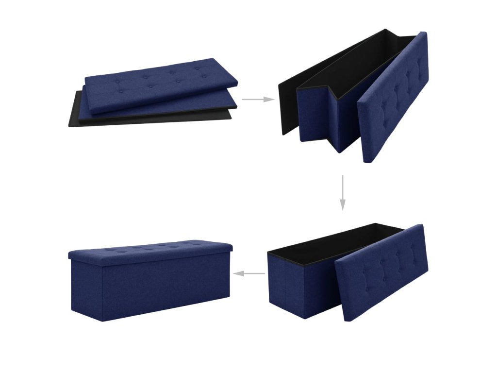 Lavica do predsiene je vyrobená z MDF a čalúnená umelým ľanom, ktorý je odolný a stabilný. Toto sedenie s úložným priestorom je vyplnené molitanom a je pohodlné na sedenie. Disponuje dostatkom úložného priestoru pre uloženie množstva rôznych predmetov. Navyše sa dá jednoducho poskladať, aby sa ušetrilo miesto, keď sa nepoužíva.
