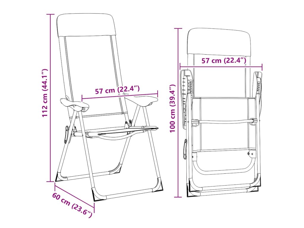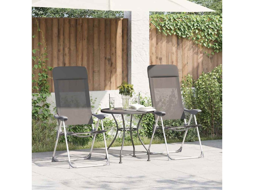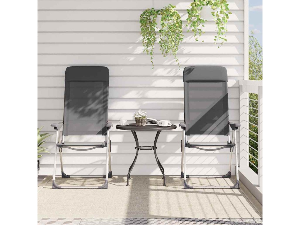 Vďaka pevnej konštrukcii sú tieto vonkajšie stoličky trvácne a stabilné. Každá stolička má nosnosť až do 120 kg. Vysokokvalitné textilénové sedadlo a operadlo sú odolné voči opotrebovaniu. Vďaka ľahkému hliníkovému rámu a skladaciemu dizajnu sa stoličky dajú jednoducho odniesť a premiestniť. Keď záhradné stoličky nepoužívate, stačí ich jednoducho sklopiť a prepraviť či odložiť.