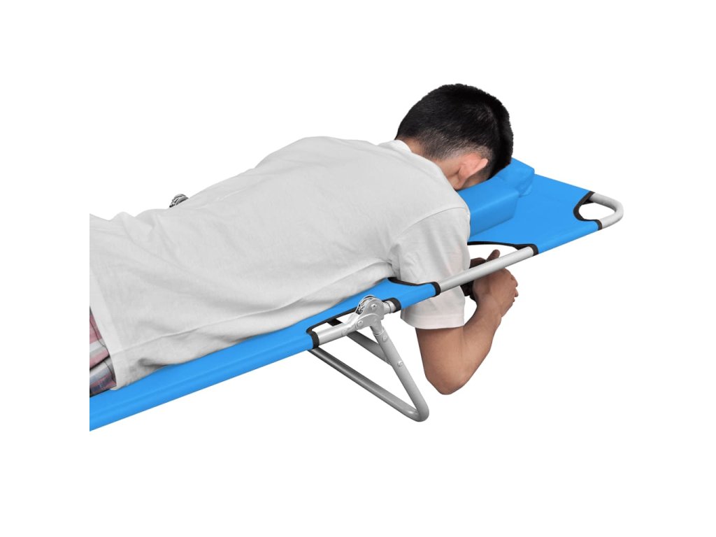 Skladacie opaľovacie lehátko s vankúšom je ako stvorené na odpočinok a užívanie si dňa na záhrade alebo pri vode. Lehátko je vybavené nastaviteľným operadlom.