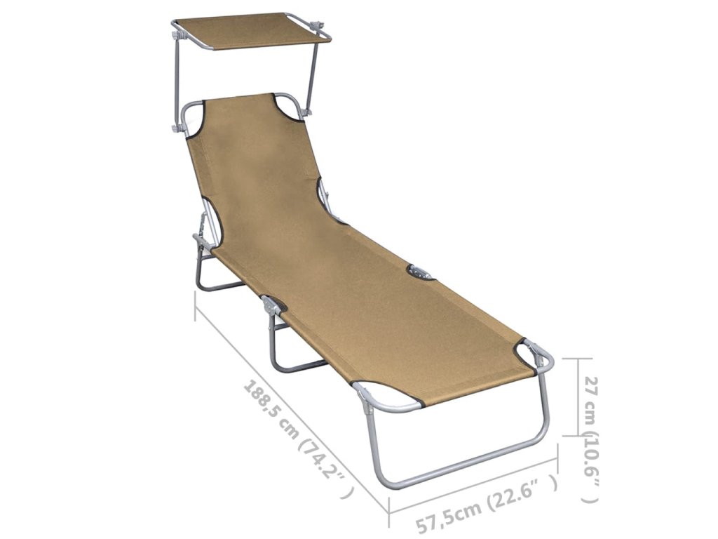 Toto vysokokvalitné ležadlo je vybavené nastaviteľnou strieškou, takže si môžete užiť opaľovanie bez obáv z oslnenia. Operadlo je nastaviteľné a umožňuje vám nájsť si tú najpohodlnejšiu polohu. Rám je vyrobený z hliníka s práškovanou povrchovou úpravou, ktorý je odolný voči poveternostným vplyvom. Maximálna nosnosť je 120 kg. Vďaka svojmu skladaciemu dizajnu sa dá ľahko uskladniť, keď sa nepoužíva. Je tiež ľahké pre pohodlnú prepravu.