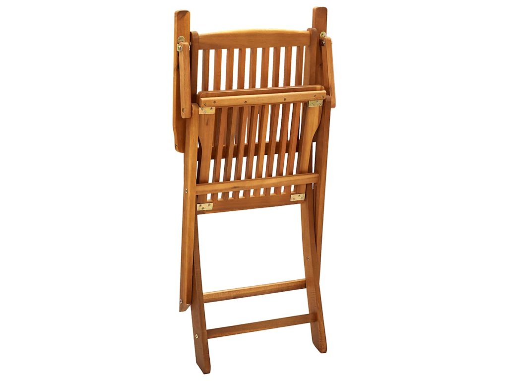 Jedálenské stoličky sú vyrobené z prvotriedneho akáciového dreva. Ide o tvrdé tropické drevo, ktoré je skutočne trvácne a odolné voči poveternostným vplyvom. Povrch s olejovým náterom sa dá ľahko očistiť pomocou navlhčenej handričky. Stoličky sa dajú poskladať, aby nezaberali veľa miesta, keď sa nepoužívajú.