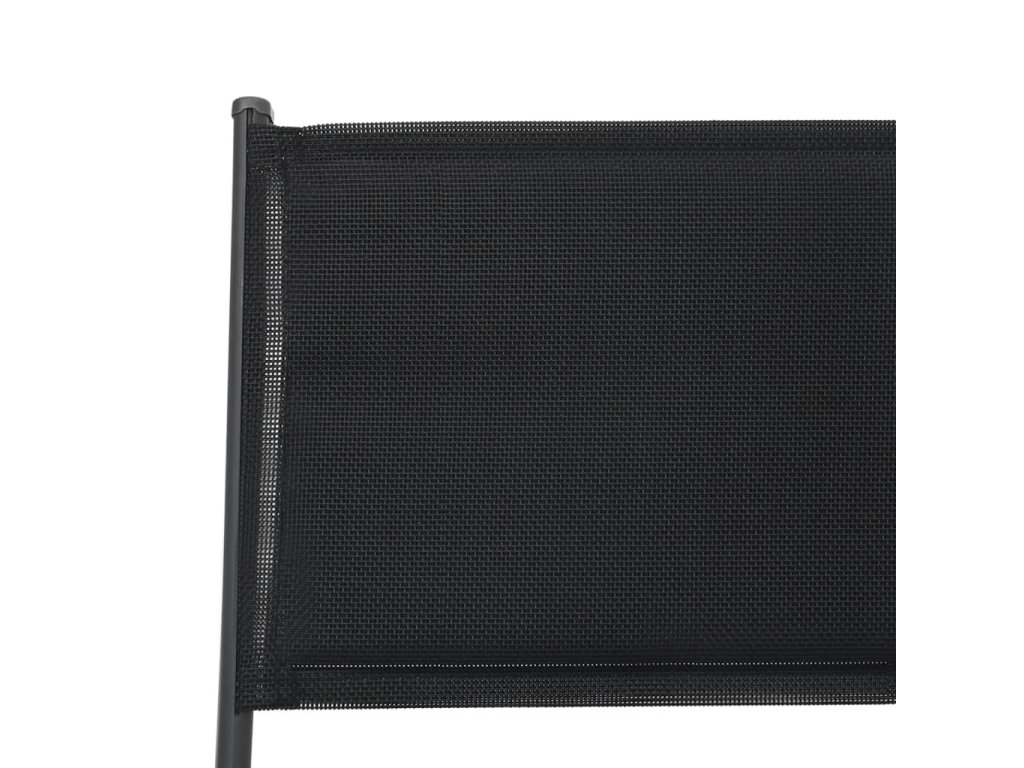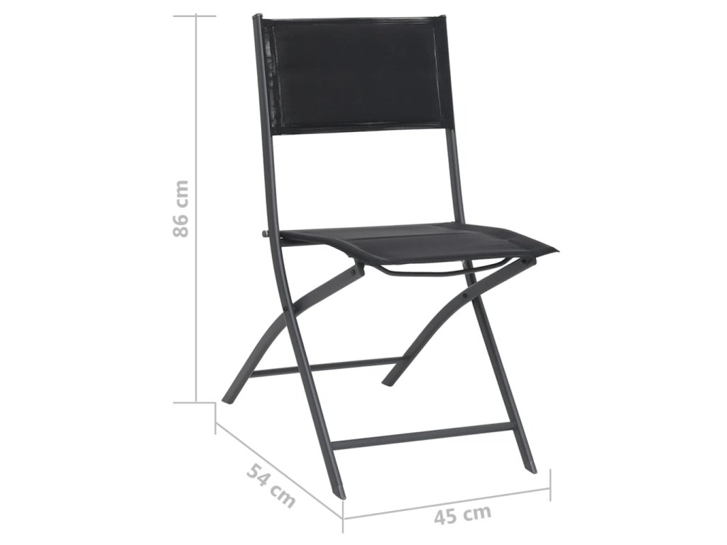Záhradné stoličky majú oceľový rám s práškovou povrchovou úpravou, vďaka čomu sú pevné a stabilné. O pohodlie stoličiek sa postará textilénová látka, ktorá je odolná voči poveternostným vplyvom. Jedálenské stoličky sa dajú poskladať, aby nezaberali veľa miesta, keď sa nepoužívajú.