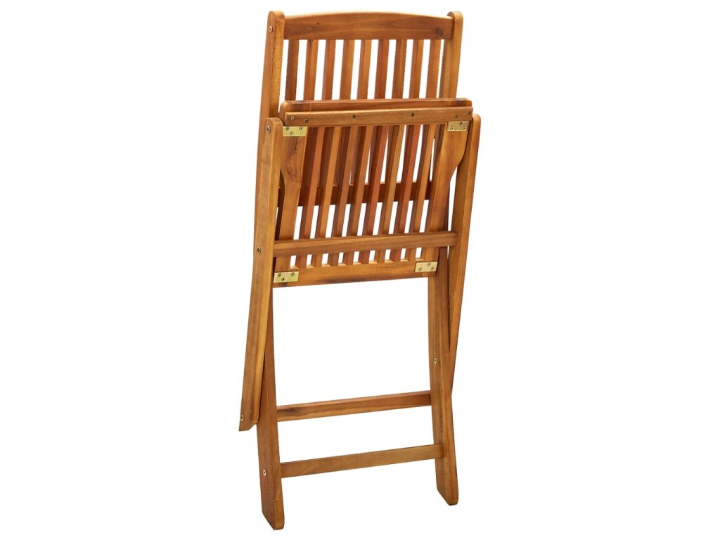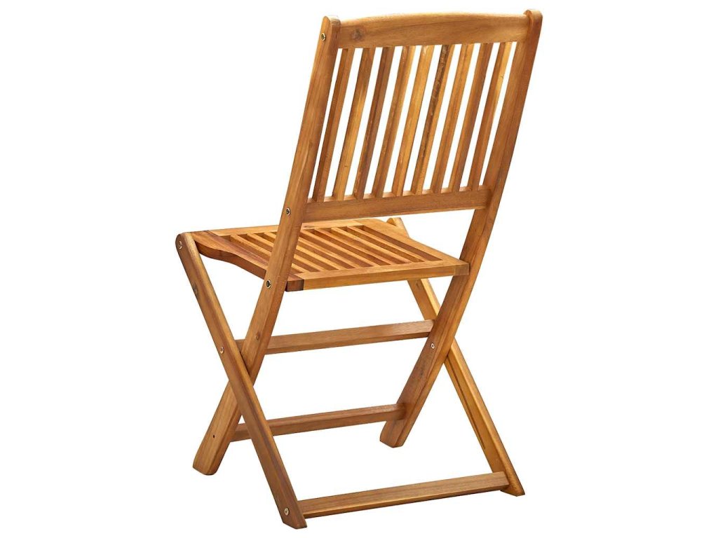 Jedálenské stoličky sú vyrobené z prvotriedneho akáciového dreva. Ide o tvrdé tropické drevo, ktoré je skutočne trvácne a odolné voči poveternostným vplyvom. Povrch s olejovým náterom sa dá ľahko očistiť pomocou navlhčenej handričky. Stoličky sa dajú poskladať, aby nezaberali veľa miesta, keď sa nepoužívajú.