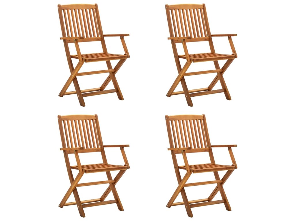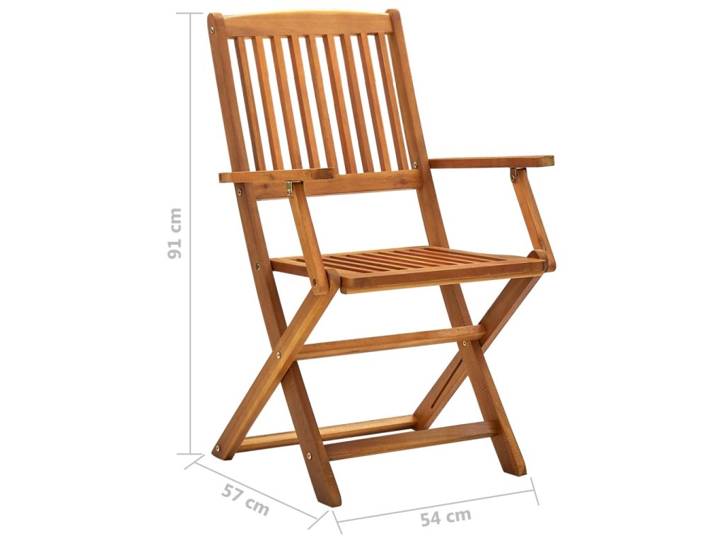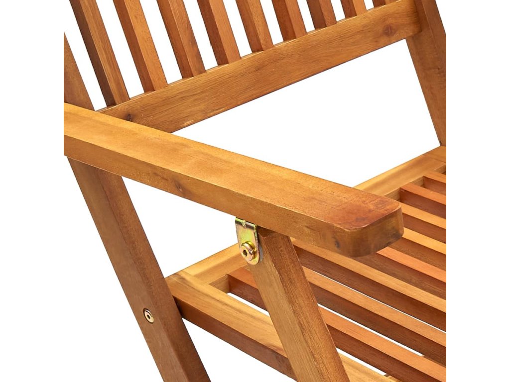 Jedálenské stoličky sú vyrobené z prvotriedneho akáciového dreva. Ide o tvrdé tropické drevo, ktoré je skutočne trvácne a odolné voči poveternostným vplyvom. Povrch s olejovým náterom sa dá ľahko očistiť pomocou navlhčenej handričky. Stoličky sa dajú poskladať, aby nezaberali veľa miesta, keď sa nepoužívajú.