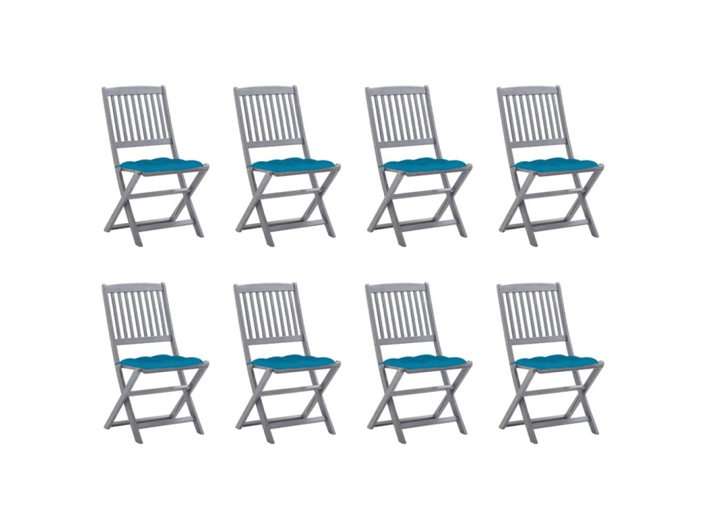 Tieto jedálenské stoličky sú vyrobené z masívneho akáciového dreva, tropického tvrdého dreva, ktoré je odolné voči poveternostným vplyvom a trvácne pre dlhé roky používania. Akáciový masív má dostatočnú silu, aby uniesol zaťaženie, ale odolá aj dlhodobému používaniu. Sivý premývaný povrch sa ľahko čistí vlhkou handričkou. Keď sa stoličky nepoužívajú, dajú sa sklopiť, aby sa ušetrilo miesto. Pribalený vankúš poskytuje vysoké pohodlie pri oddychu alebo stolovaní. Každý vankúš má dve sady šnúrok, pomocou ktorých ho pevne pripevníte k stoličke.