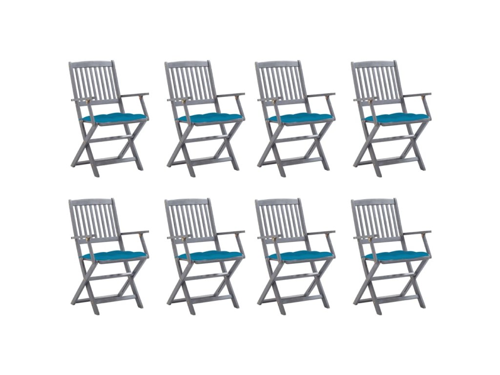 Tieto jedálenské stoličky sú vyrobené z masívneho akáciového dreva, tropického tvrdého dreva, ktoré je odolné voči poveternostným vplyvom a trvácne pre dlhé roky používania. Akáciový masív má dostatočnú silu, aby uniesol zaťaženie, ale odolá aj dlhodobému používaniu. Sivý premývaný povrch sa ľahko čistí vlhkou handričkou. Keď sa stoličky nepoužívajú, dajú sa sklopiť, aby sa ušetrilo miesto. Pribalený vankúš poskytuje vysoké pohodlie pri oddychu alebo stolovaní. Každý vankúš má dve sady šnúrok, pomocou ktorých ho pevne pripevníte k stoličke.