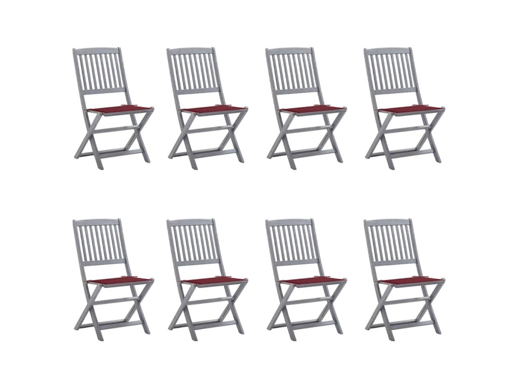Tieto jedálenské stoličky sú vyrobené z masívneho akáciového dreva, tropického tvrdého dreva, ktoré je odolné voči poveternostným vplyvom a trvácne pre dlhé roky používania. Akáciový masív má dostatočnú silu, aby uniesol zaťaženie, ale odolá aj dlhodobému používaniu. Sivý premývaný povrch sa ľahko čistí vlhkou handričkou. Keď sa stoličky nepoužívajú, dajú sa sklopiť, aby sa ušetrilo miesto. Pribalený vankúš poskytuje vysoké pohodlie pri oddychu alebo stolovaní. Každý vankúš má dve sady šnúrok, pomocou ktorých ho pevne pripevníte k stoličke.