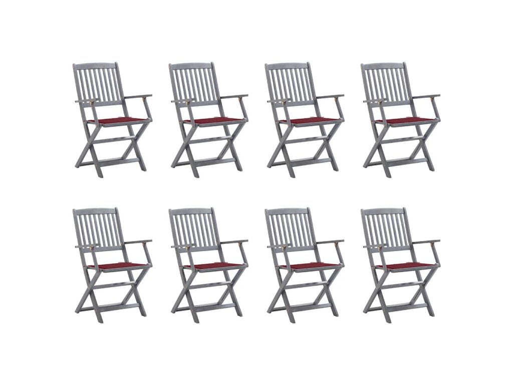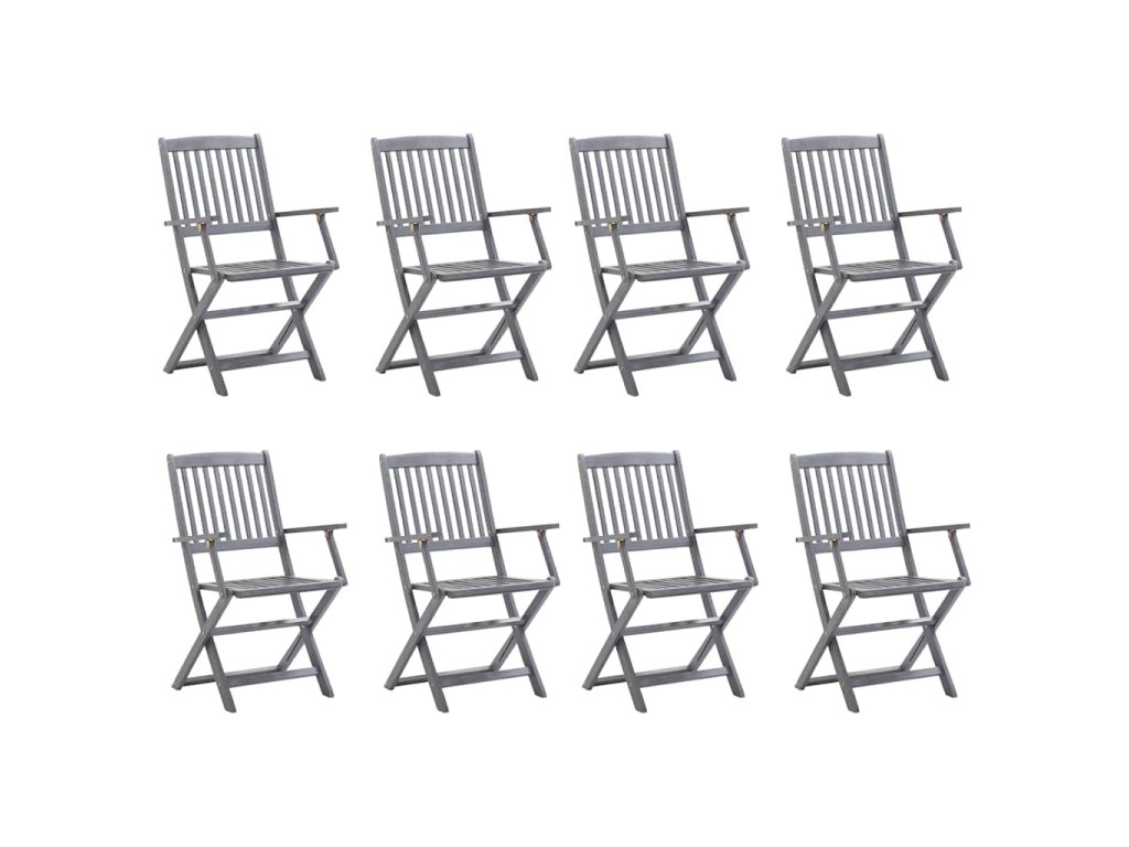 Tieto jedálenské stoličky sú vyrobené z masívneho akáciového dreva, tropického tvrdého dreva, ktoré je odolné voči poveternostným vplyvom a trvácne pre dlhé roky používania. Akáciový masív má dostatočnú silu, aby uniesol zaťaženie, ale odolá aj dlhodobému používaniu. Sivý premývaný povrch sa ľahko čistí vlhkou handričkou. Keď sa stoličky nepoužívajú, dajú sa sklopiť, aby sa ušetrilo miesto. Pribalený vankúš poskytuje vysoké pohodlie pri oddychu alebo stolovaní. Každý vankúš má dve sady šnúrok, pomocou ktorých ho pevne pripevníte k stoličke.