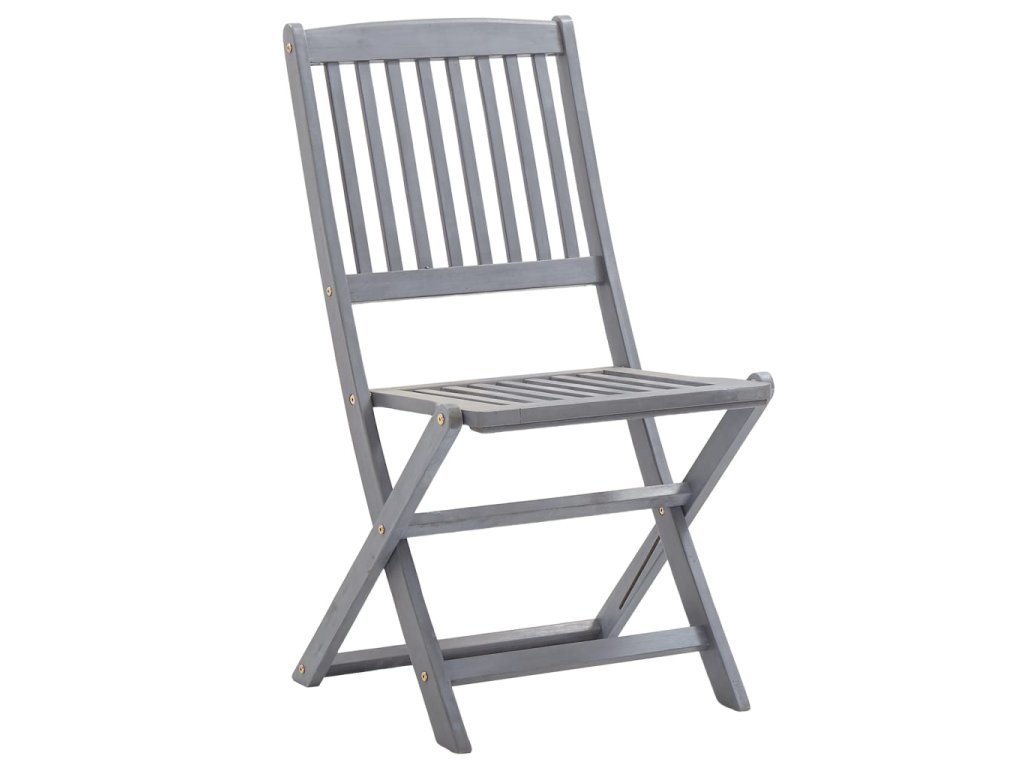 Tieto jedálenské stoličky sú vyrobené z masívneho akáciového dreva, tropického tvrdého dreva, ktoré je odolné voči poveternostným vplyvom a trvácne pre dlhé roky používania. Akáciový masív má dostatočnú silu, aby uniesol zaťaženie, ale odolá aj dlhodobému používaniu. Sivý premývaný povrch sa ľahko čistí vlhkou handričkou. Keď sa stoličky nepoužívajú, dajú sa sklopiť, aby sa ušetrilo miesto. Pribalený vankúš poskytuje vysoké pohodlie pri oddychu alebo stolovaní. Každý vankúš má dve sady šnúrok, pomocou ktorých ho pevne pripevníte k stoličke.