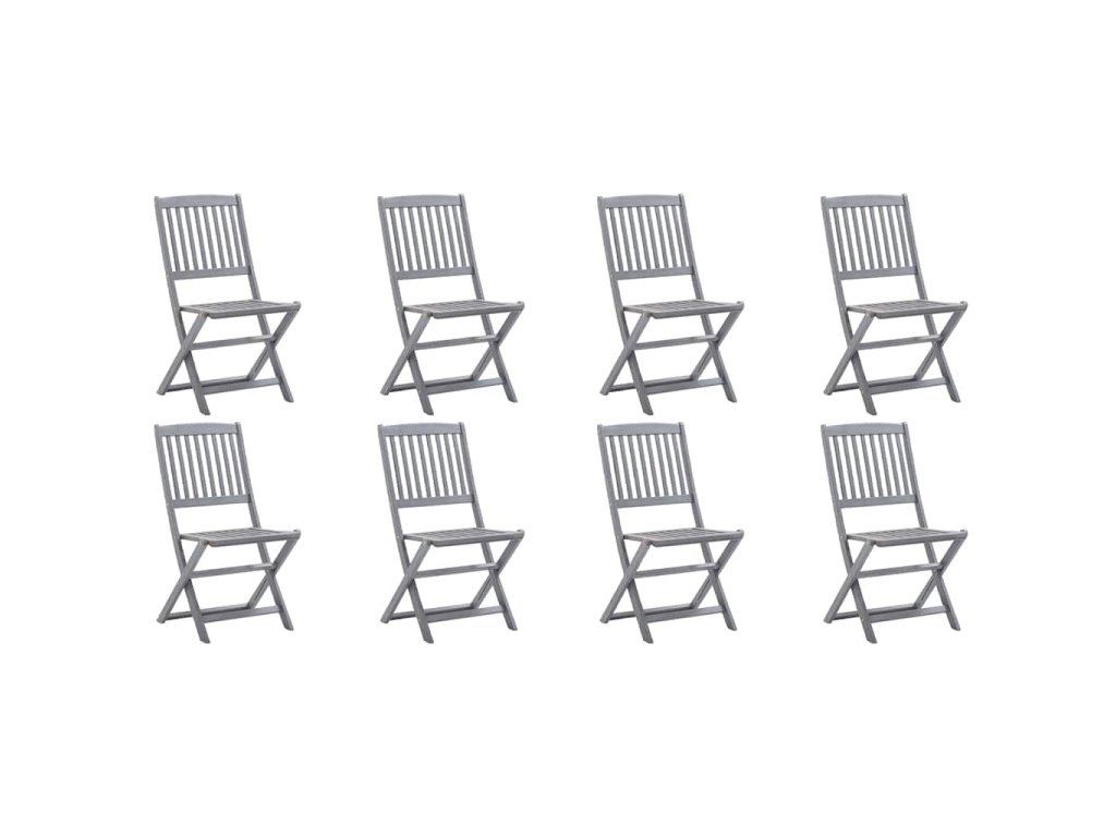 Tieto jedálenské stoličky sú vyrobené z masívneho akáciového dreva, tropického tvrdého dreva, ktoré je odolné voči poveternostným vplyvom a trvácne pre dlhé roky používania. Akáciový masív má dostatočnú silu, aby uniesol zaťaženie, ale odolá aj dlhodobému používaniu. Sivý premývaný povrch sa ľahko čistí vlhkou handričkou. Keď sa stoličky nepoužívajú, dajú sa sklopiť, aby sa ušetrilo miesto. Pribalený vankúš poskytuje vysoké pohodlie pri oddychu alebo stolovaní. Každý vankúš má dve sady šnúrok, pomocou ktorých ho pevne pripevníte k stoličke.