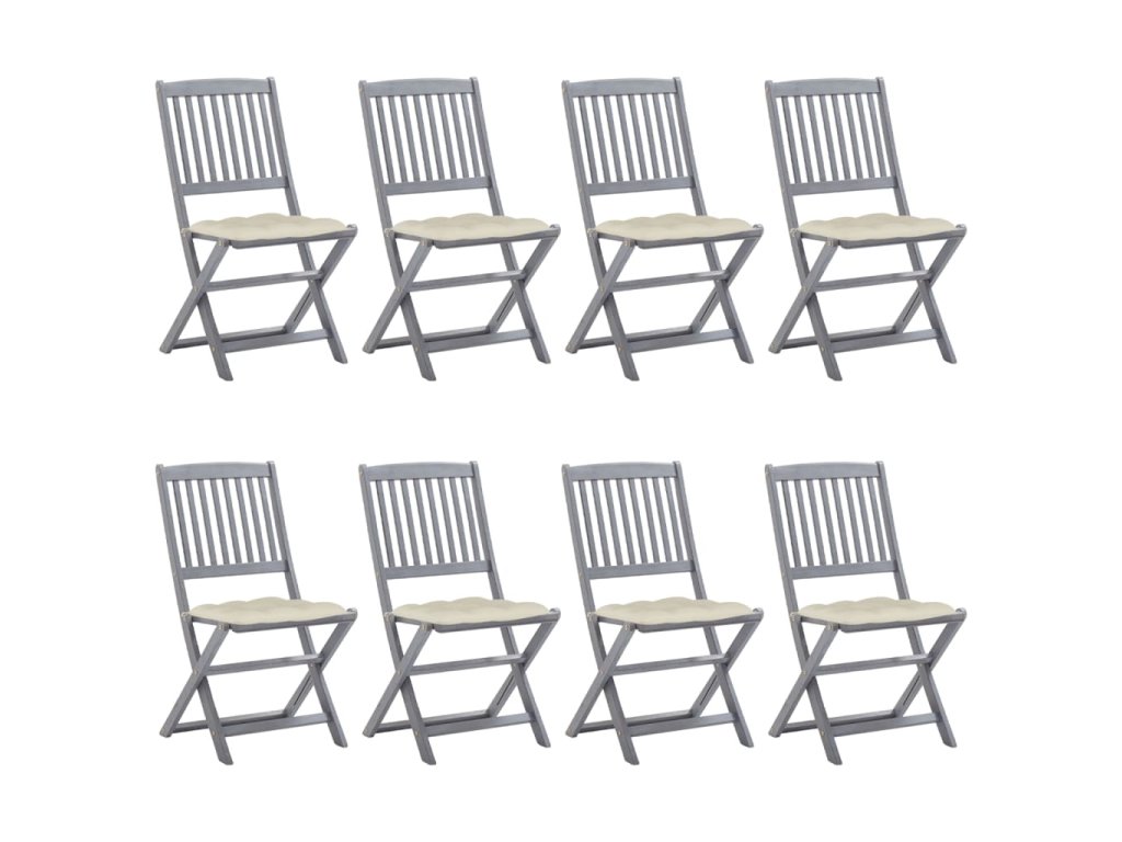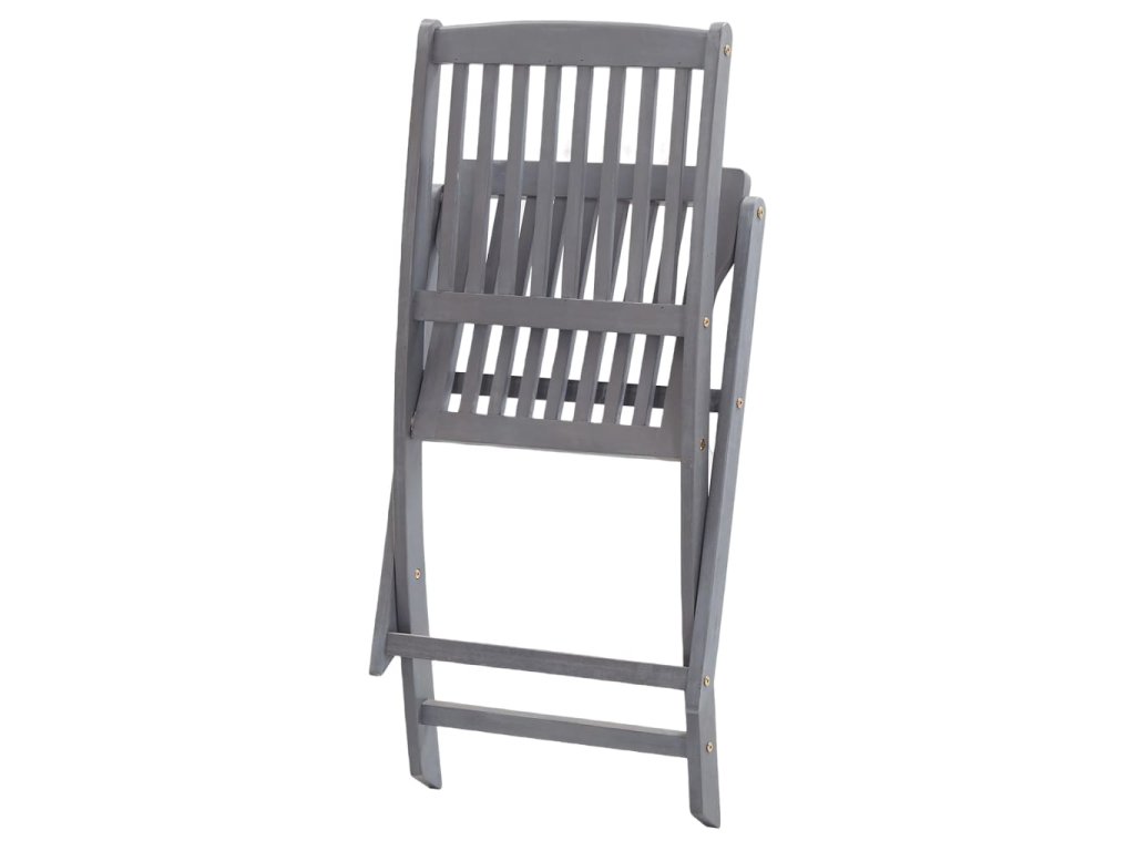 Tieto jedálenské stoličky sú vyrobené z masívneho akáciového dreva, tropického tvrdého dreva, ktoré je odolné voči poveternostným vplyvom a trvácne pre dlhé roky používania. Akáciový masív má dostatočnú silu, aby uniesol zaťaženie, ale odolá aj dlhodobému používaniu. Sivý premývaný povrch sa ľahko čistí vlhkou handričkou. Keď sa stoličky nepoužívajú, dajú sa sklopiť, aby sa ušetrilo miesto. Pribalený vankúš poskytuje vysoké pohodlie pri oddychu alebo stolovaní. Každý vankúš má dve sady šnúrok, pomocou ktorých ho pevne pripevníte k stoličke.