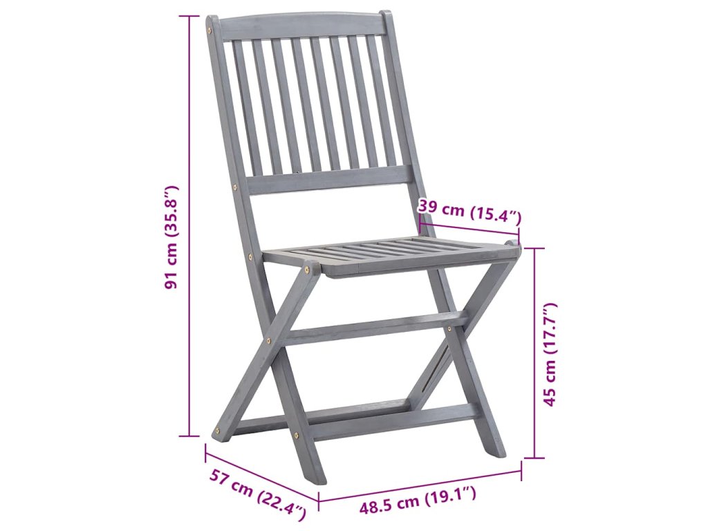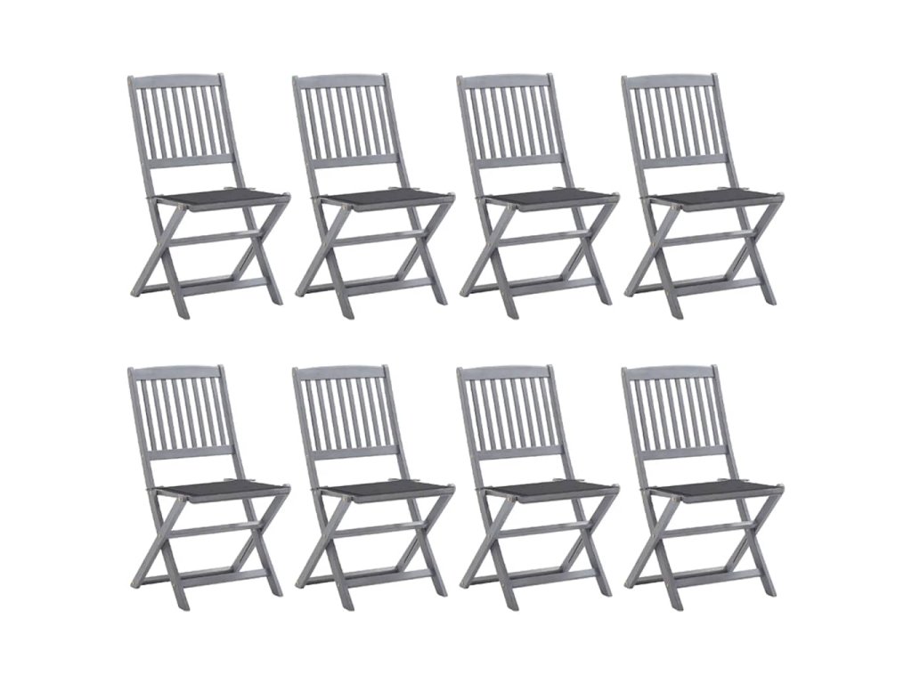 Tieto jedálenské stoličky sú vyrobené z masívneho akáciového dreva, tropického tvrdého dreva, ktoré je odolné voči poveternostným vplyvom a trvácne pre dlhé roky používania. Akáciový masív má dostatočnú silu, aby uniesol zaťaženie, ale odolá aj dlhodobému používaniu. Sivý premývaný povrch sa ľahko čistí vlhkou handričkou. Keď sa stoličky nepoužívajú, dajú sa sklopiť, aby sa ušetrilo miesto. Pribalený vankúš poskytuje vysoké pohodlie pri oddychu alebo stolovaní. Každý vankúš má dve sady šnúrok, pomocou ktorých ho pevne pripevníte k stoličke.