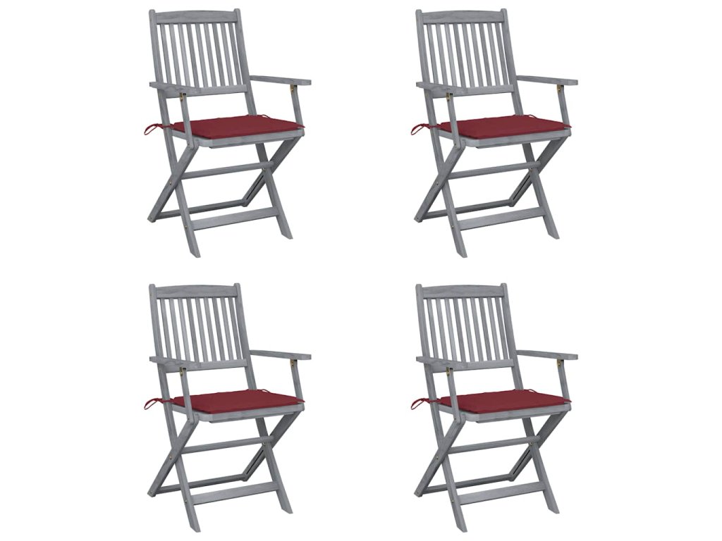 Tieto jedálenské stoličky sú vyrobené z masívneho akáciového dreva, tropického tvrdého dreva, ktoré je odolné voči poveternostným vplyvom a trvácne pre dlhé roky používania. Akáciový masív má dostatočnú silu, aby uniesol zaťaženie, ale odolá aj dlhodobému používaniu. Sivý premývaný povrch sa ľahko čistí vlhkou handričkou. Keď sa stoličky nepoužívajú, dajú sa sklopiť, aby sa ušetrilo miesto. Pribalený vankúš poskytuje vysoké pohodlie pri oddychu alebo stolovaní. Každý vankúš má dve sady šnúrok, pomocou ktorých ho pevne pripevníte k stoličke.