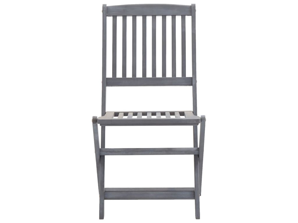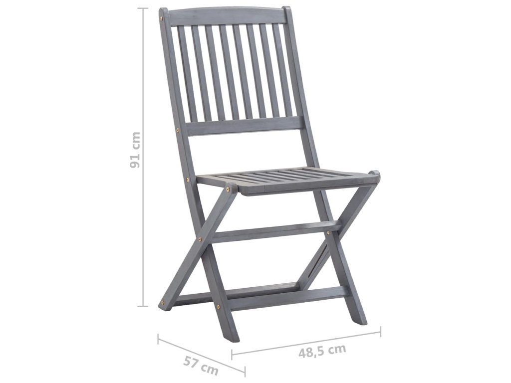 Tieto jedálenské stoličky sú vyrobené z masívneho akáciového dreva, tropického tvrdého dreva, ktoré je odolné voči poveternostným vplyvom a trvácne pre dlhé roky používania. Akáciový masív má dostatočnú silu, aby uniesol zaťaženie, ale odolá aj dlhodobému používaniu. Sivý premývaný povrch sa ľahko čistí vlhkou handričkou. Keď sa stoličky nepoužívajú, dajú sa sklopiť, aby sa ušetrilo miesto. Pribalený vankúš poskytuje vysoké pohodlie pri oddychu alebo stolovaní. Každý vankúš má dve sady šnúrok, pomocou ktorých ho pevne pripevníte k stoličke.