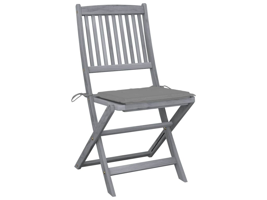 Tieto jedálenské stoličky sú vyrobené z masívneho akáciového dreva, tropického tvrdého dreva, ktoré je odolné voči poveternostným vplyvom a trvácne pre dlhé roky používania. Akáciový masív má dostatočnú silu, aby uniesol zaťaženie, ale odolá aj dlhodobému používaniu. Sivý premývaný povrch sa ľahko čistí vlhkou handričkou. Keď sa stoličky nepoužívajú, dajú sa sklopiť, aby sa ušetrilo miesto. Pribalený vankúš poskytuje vysoké pohodlie pri oddychu alebo stolovaní. Každý vankúš má dve sady šnúrok, pomocou ktorých ho pevne pripevníte k stoličke.