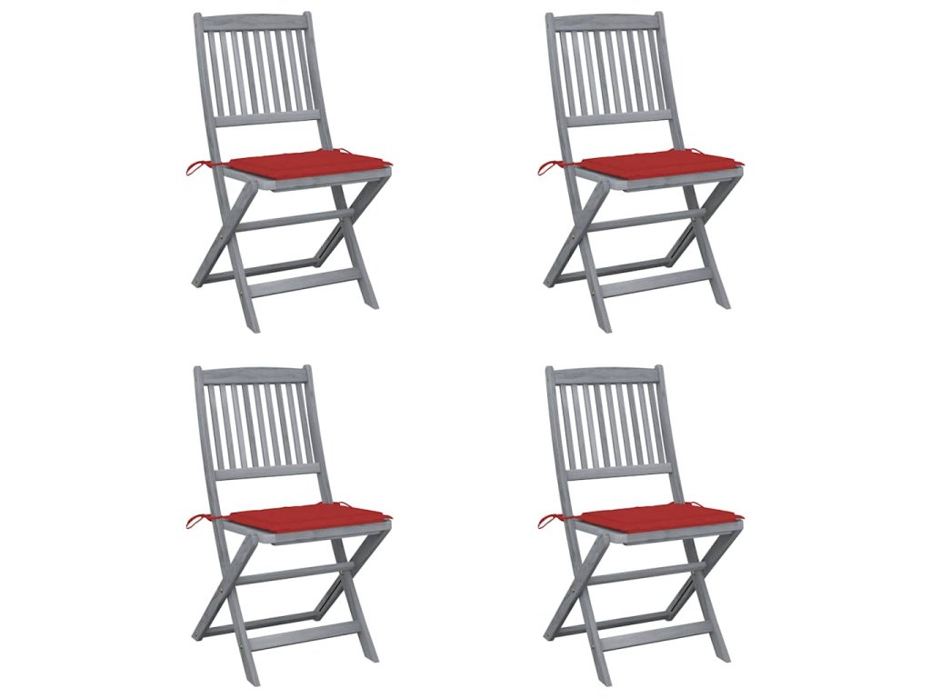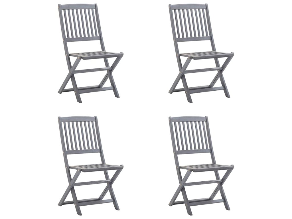 Tieto jedálenské stoličky sú vyrobené z masívneho akáciového dreva, tropického tvrdého dreva, ktoré je odolné voči poveternostným vplyvom a trvácne pre dlhé roky používania. Akáciový masív má dostatočnú silu, aby uniesol zaťaženie, ale odolá aj dlhodobému používaniu. Sivý premývaný povrch sa ľahko čistí vlhkou handričkou. Keď sa stoličky nepoužívajú, dajú sa sklopiť, aby sa ušetrilo miesto. Pribalený vankúš poskytuje vysoké pohodlie pri oddychu alebo stolovaní. Každý vankúš má dve sady šnúrok, pomocou ktorých ho pevne pripevníte k stoličke.
